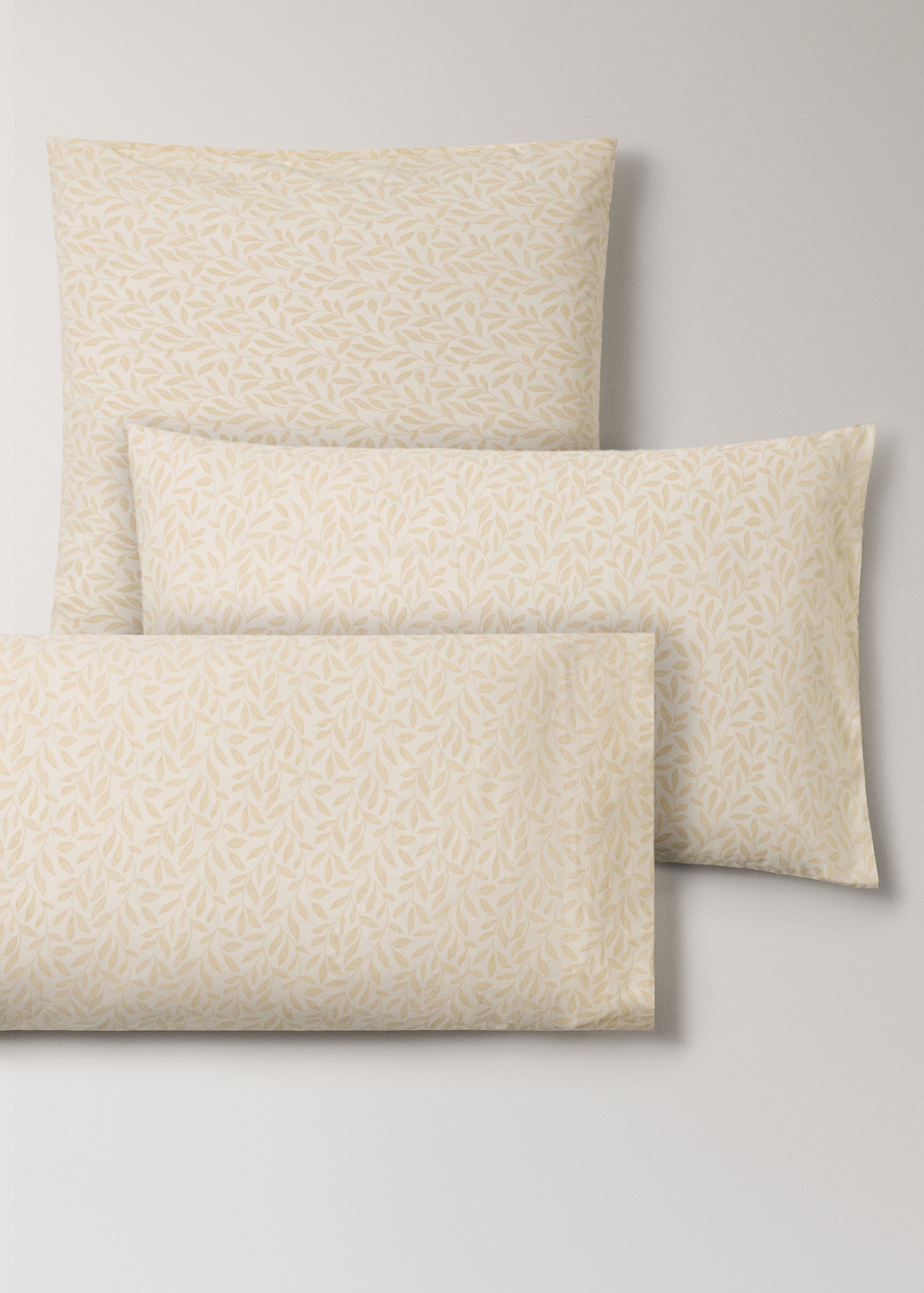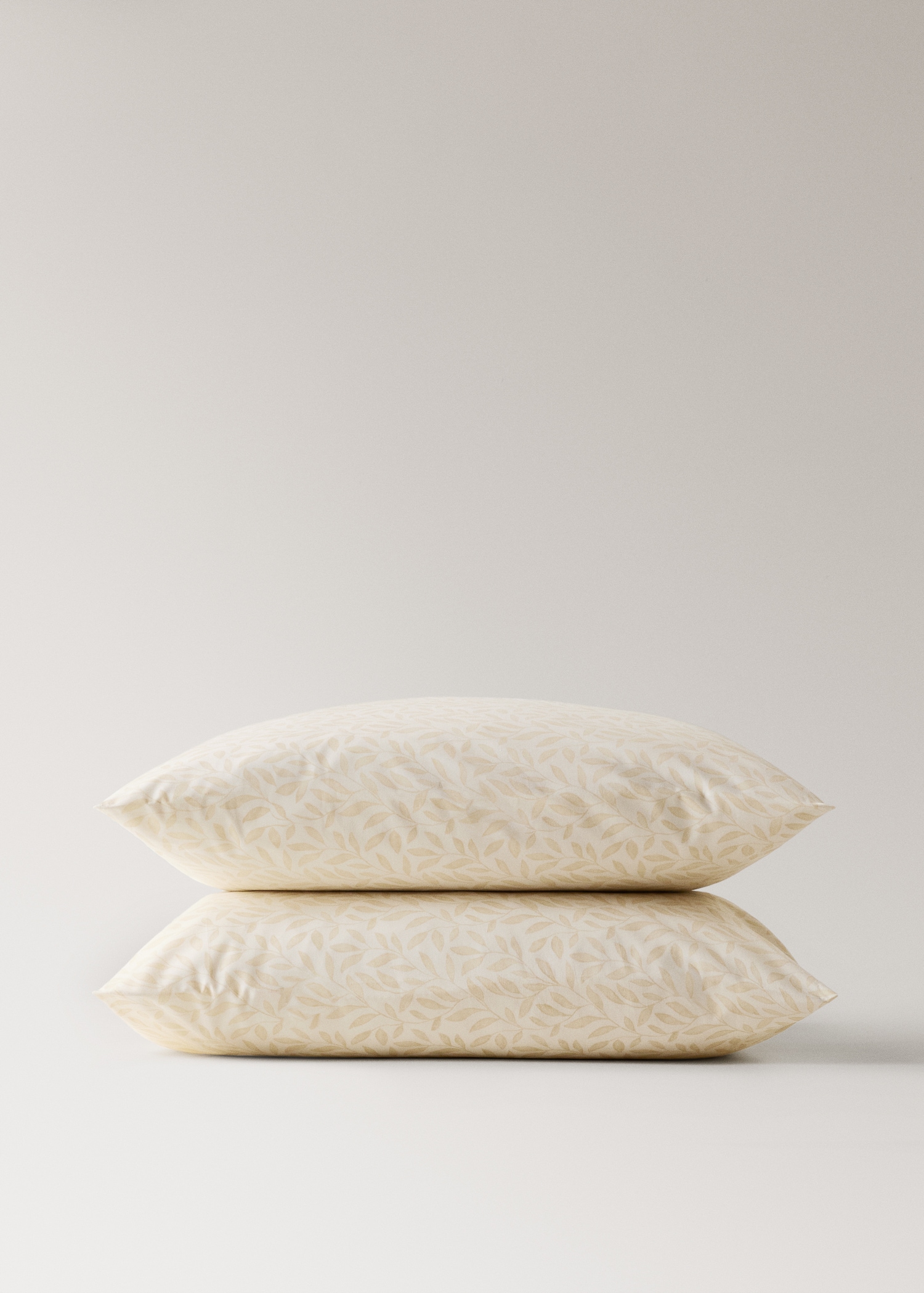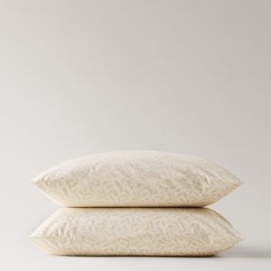 Two 60×60 cm percale cotton pillowcases with leaf pattern