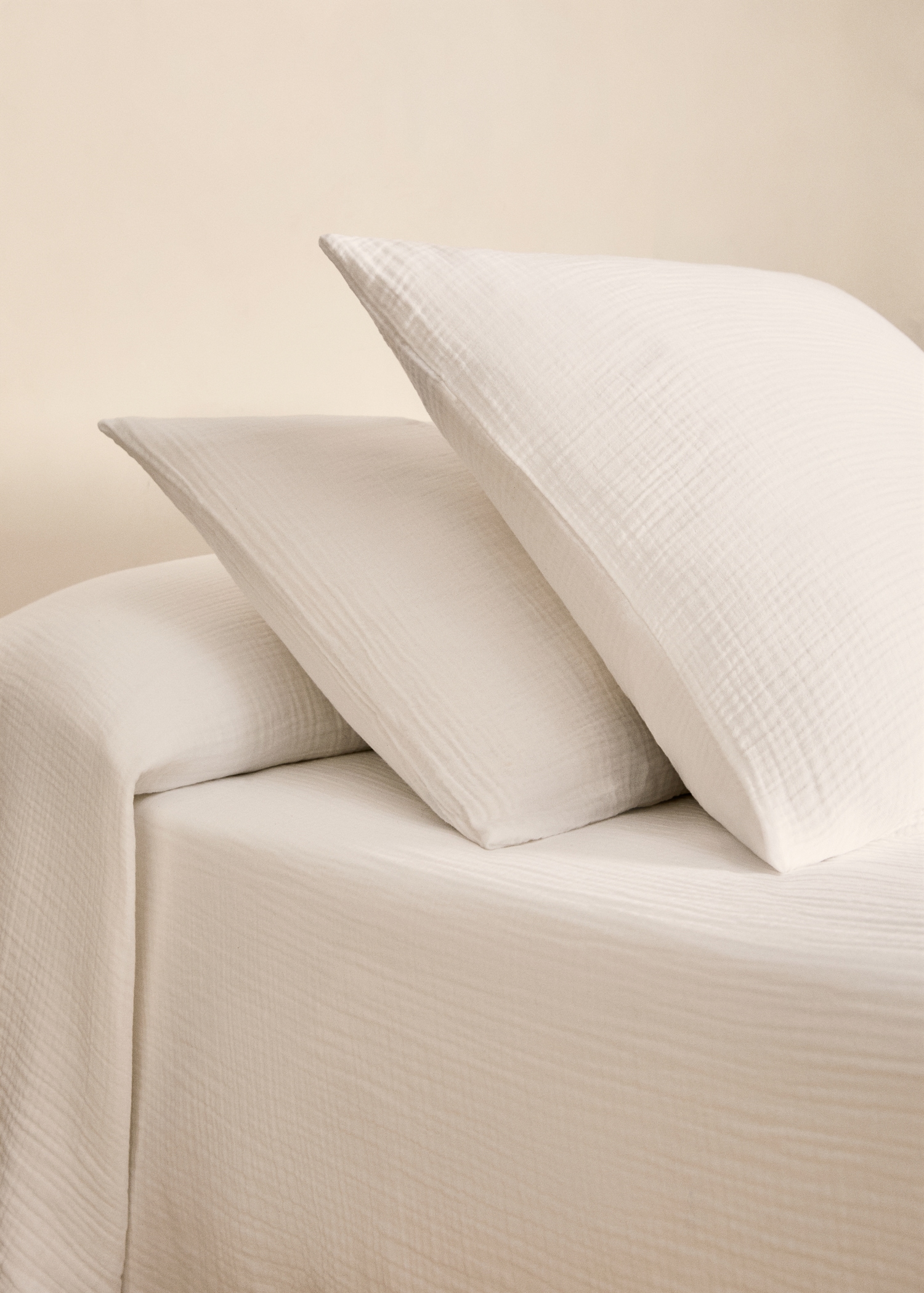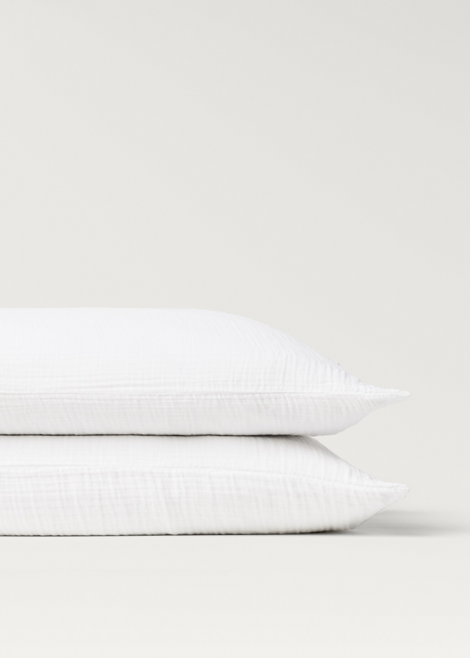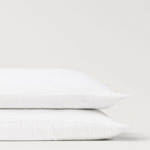 100% cotton fabric. 250 threads. Size: 50x75cm. Chiffon fabric. Three-layer muslin. Pleasant texture. Soft texture. Quick-dry fabric. Wrinkled and natural finishing. Available in various colors. Pair it with more items. No closure. Does not include insert. Pack of 2. Combine matching pillowcases in three available sizes