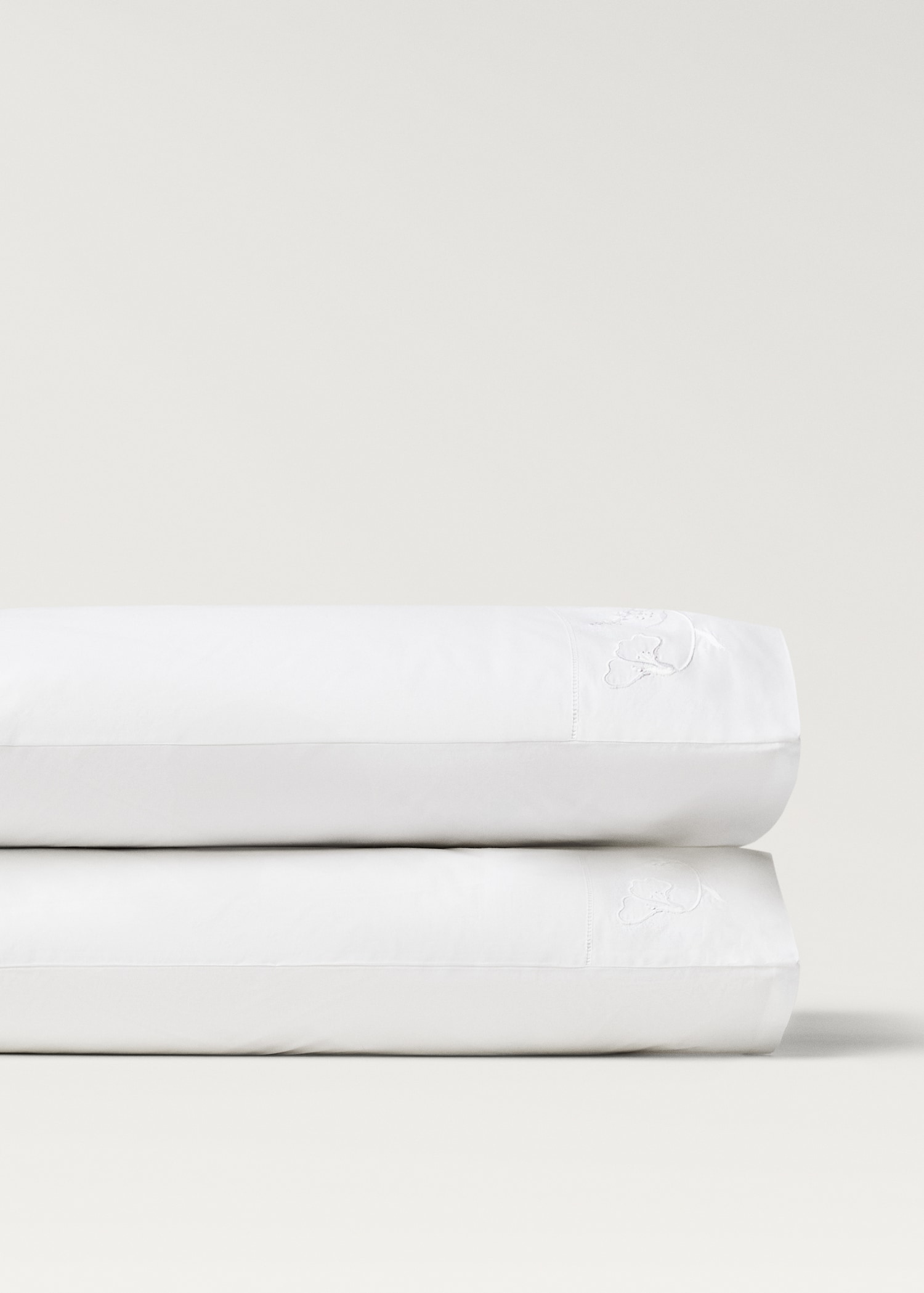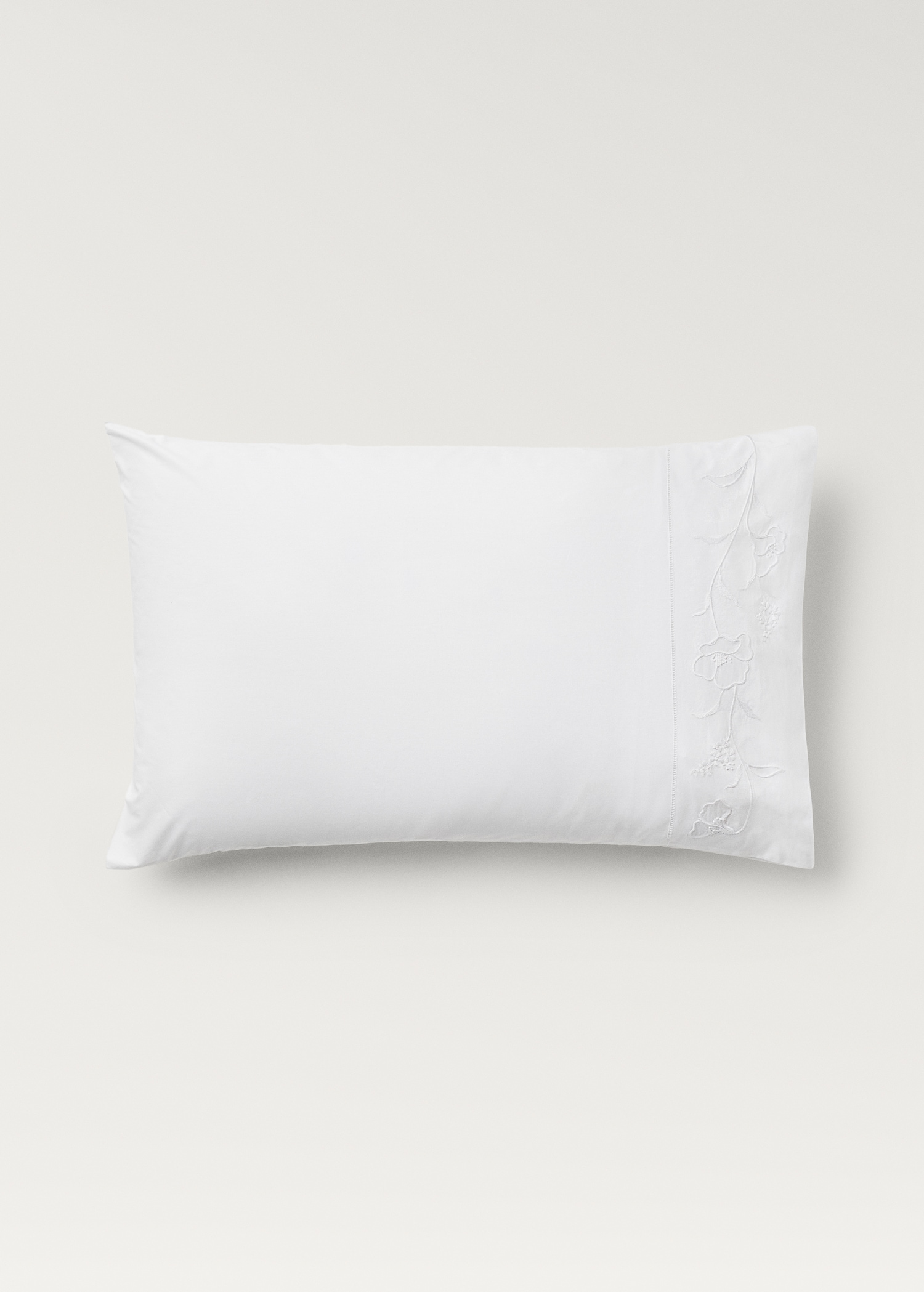 Two cotton hand-embroidered floral pillowcases 50×75 cm