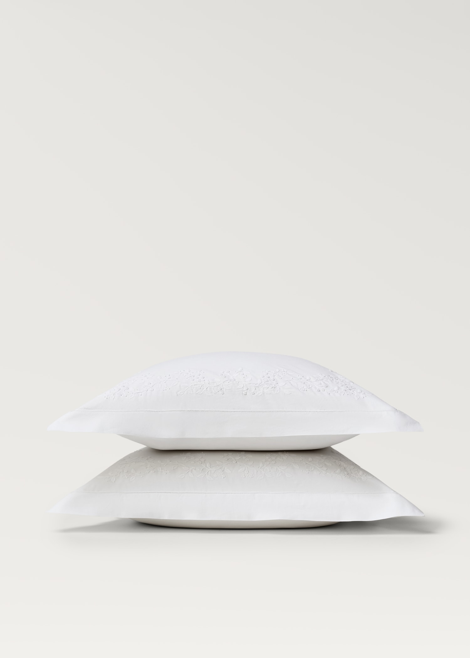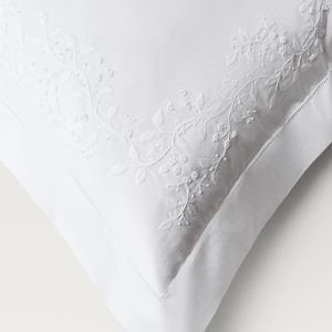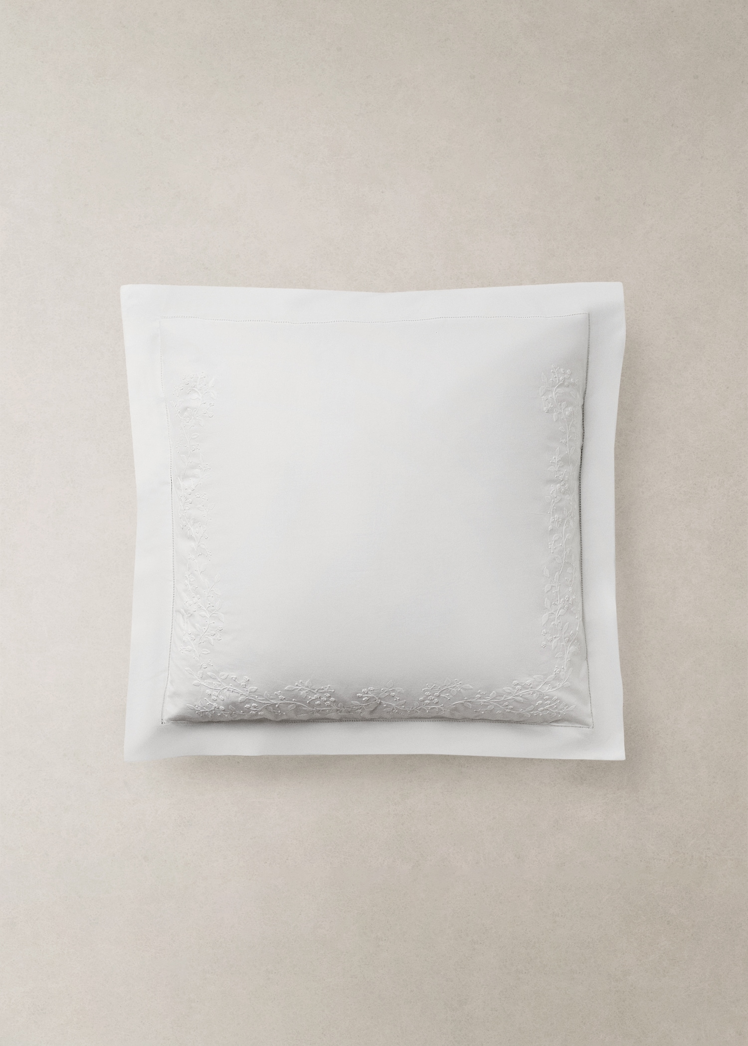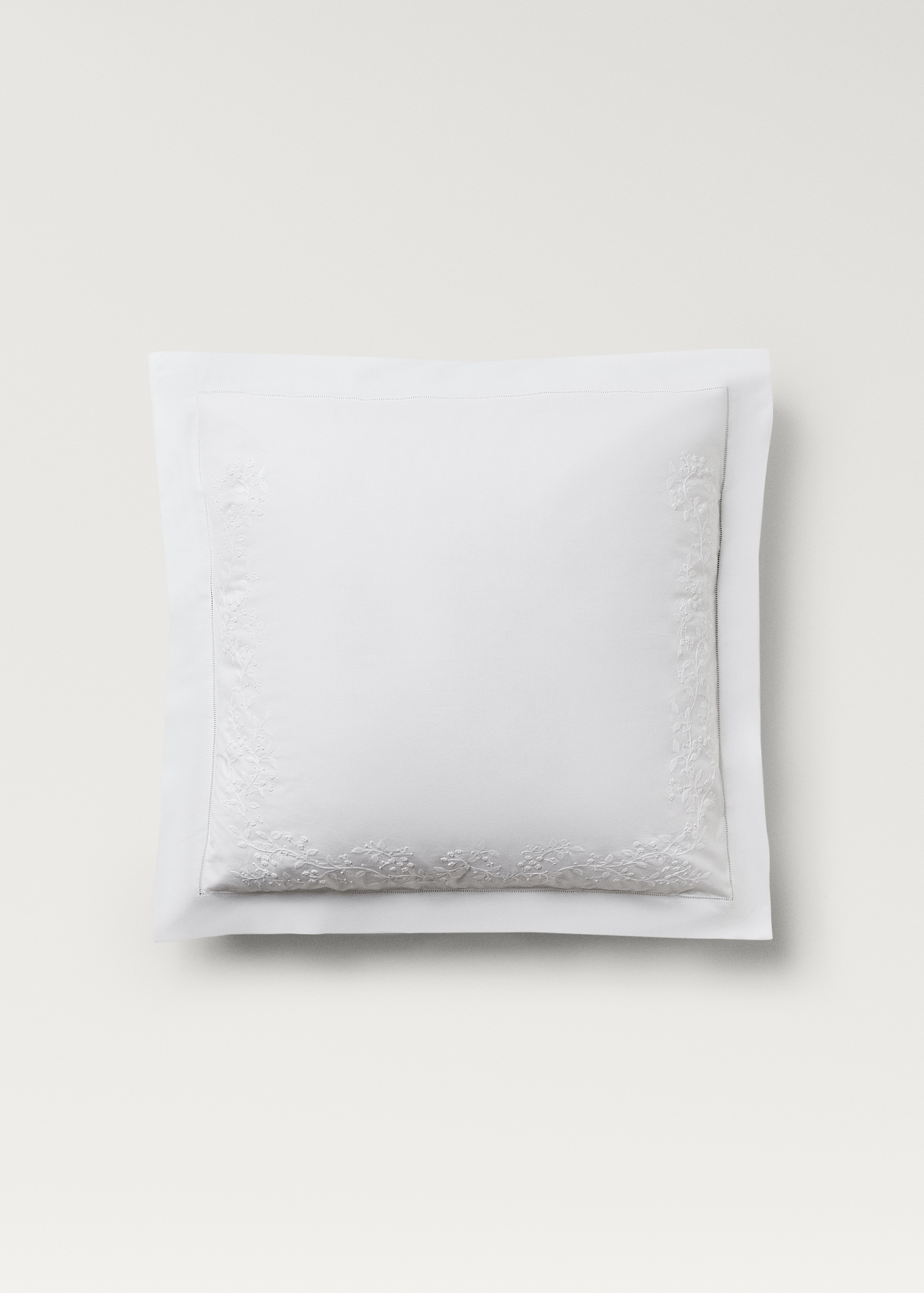 Two cotton percale pillowcases with embroidered flowers 60×60 cm