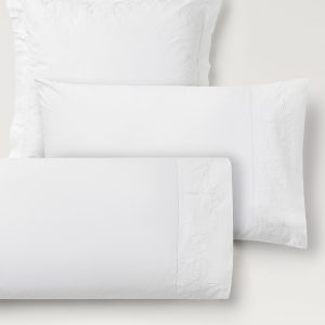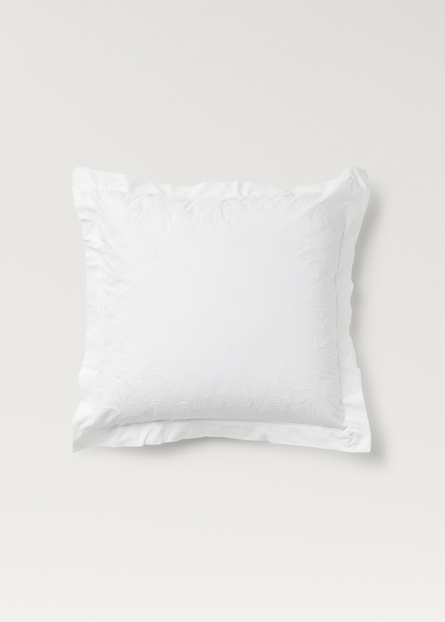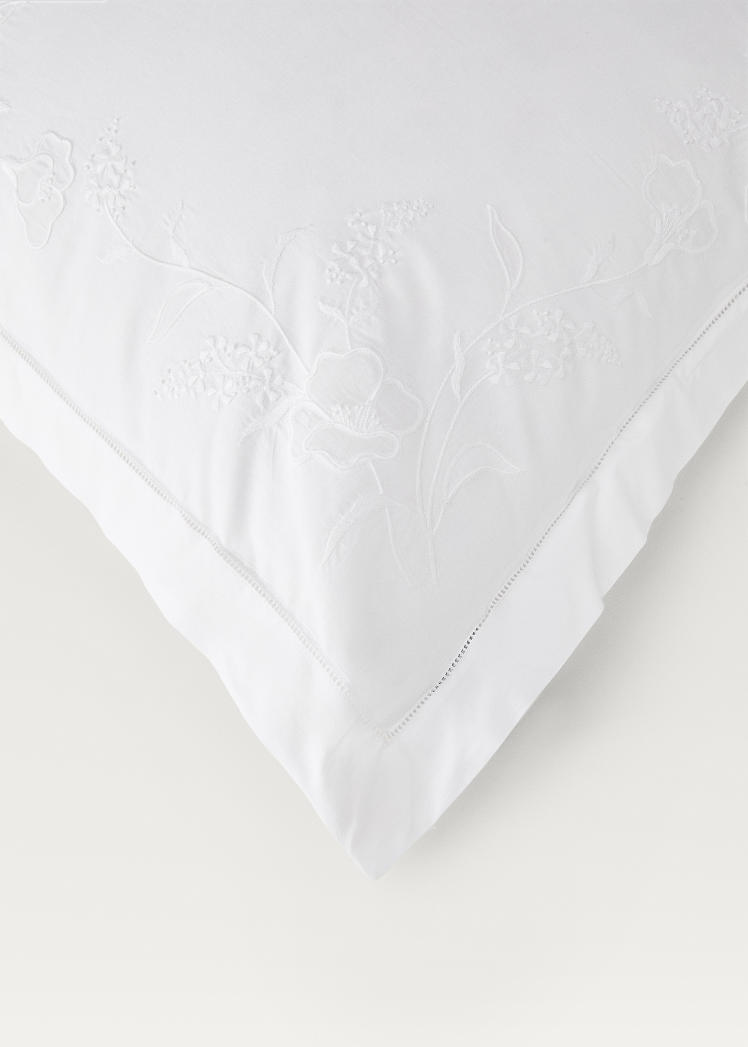 Two cotton pillowcases with hand-embroidered flowers 60×60 cm