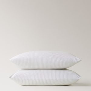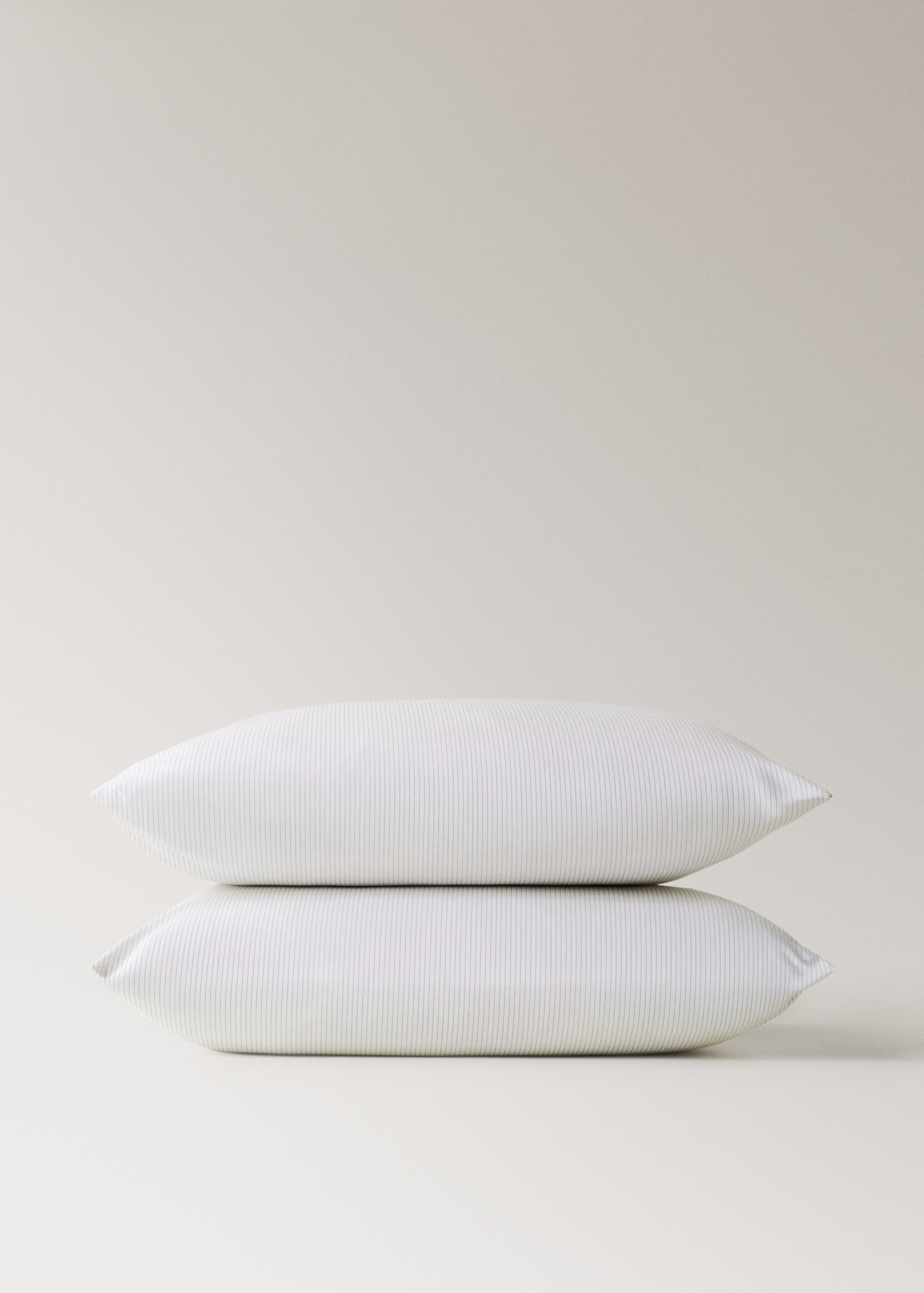 Pack of 2. Size: 23.6×23.6 in. 100% Cotton. 200 thread count. Fresh, soft, durable, breathable, and versatile. Fine-stripe design. With closure. No filling. Coordinates with more products from the collection
