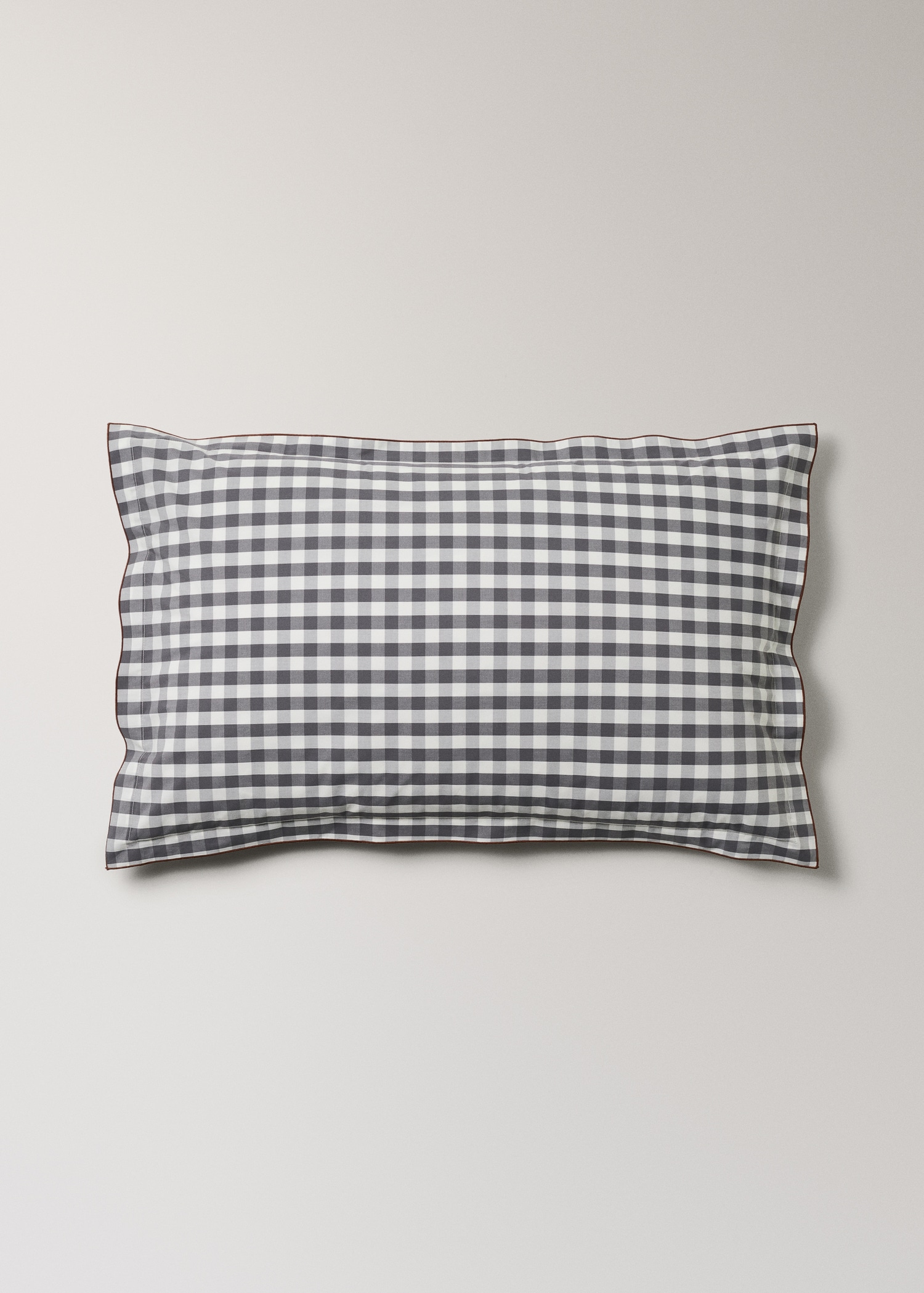 100% Cotton. Size: 50x75cm. No filling. Pack of 2. 300 thread count. Percale cotton yarn-dyed gingham check with overlock finish. Gingham check print. Two-tone design. Creates a warm and cozy atmosphere. Coordinates with more products from the collection