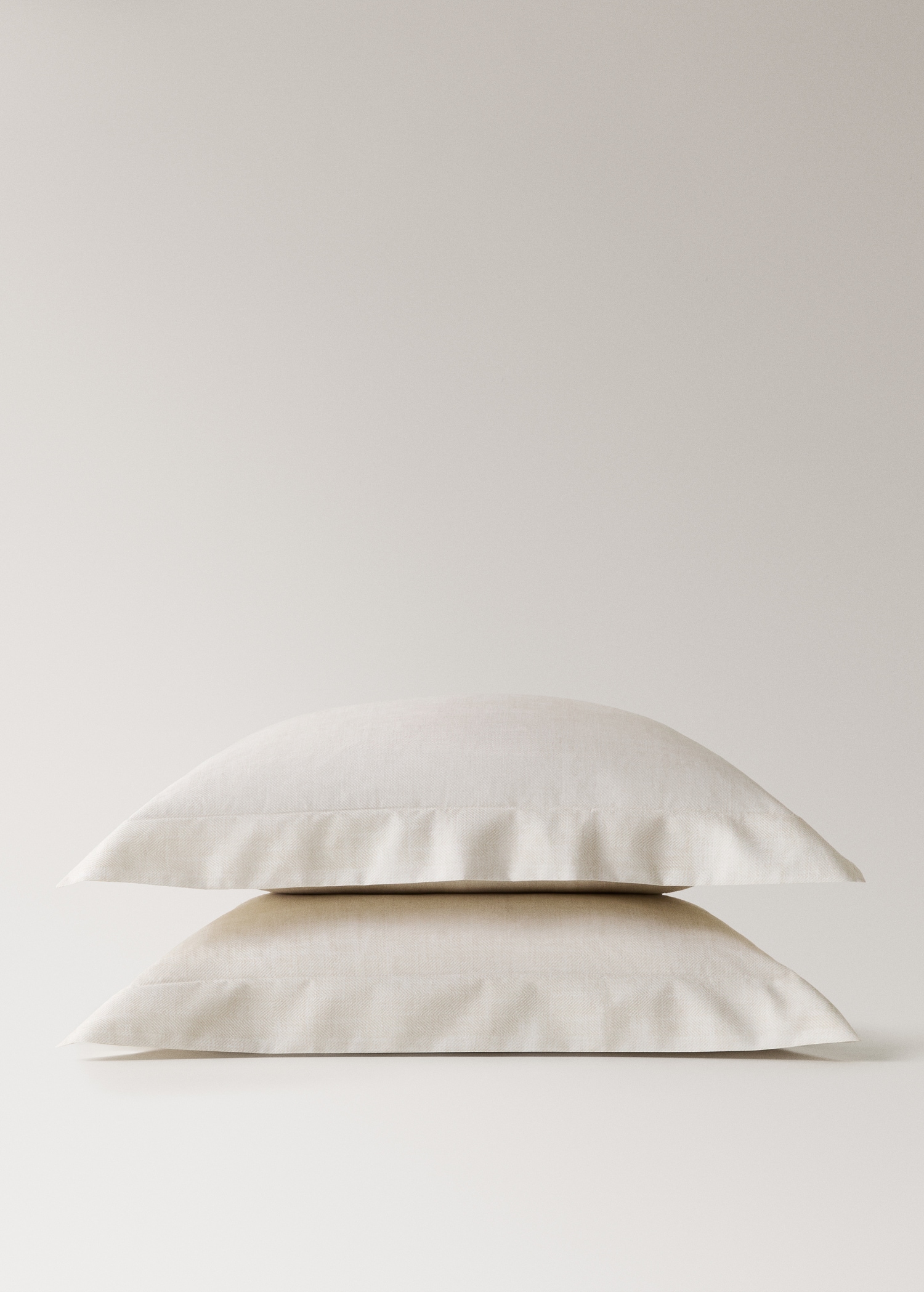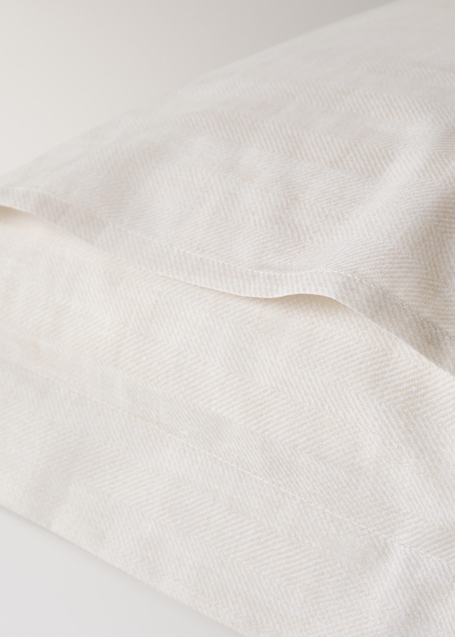 Size: 23.6×23.6 in. 100% Cotton. Percale cotton fabric. 200 cotton threads offering maximum softness, durability, and breathability, providing a sensation of lightness and smoothness to the touch. Herringbone pattern. Coordinates with more products from the collection. Creates a warm and pleasant atmosphere. Pack of two. Does not include insert