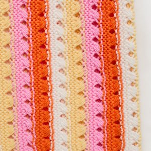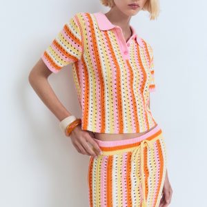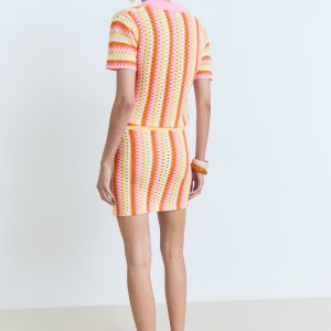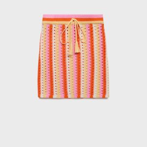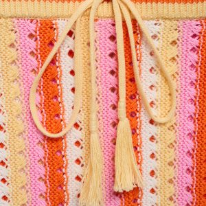 100% Cotton. Chunky Knit Fabric. Crochet design. Short design. Straight Design. Striped design. Drawstring waist. No closure. Total look