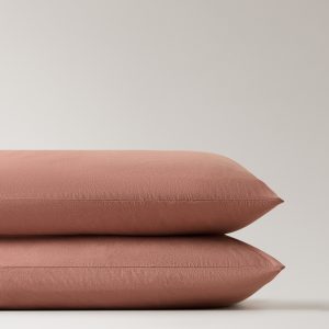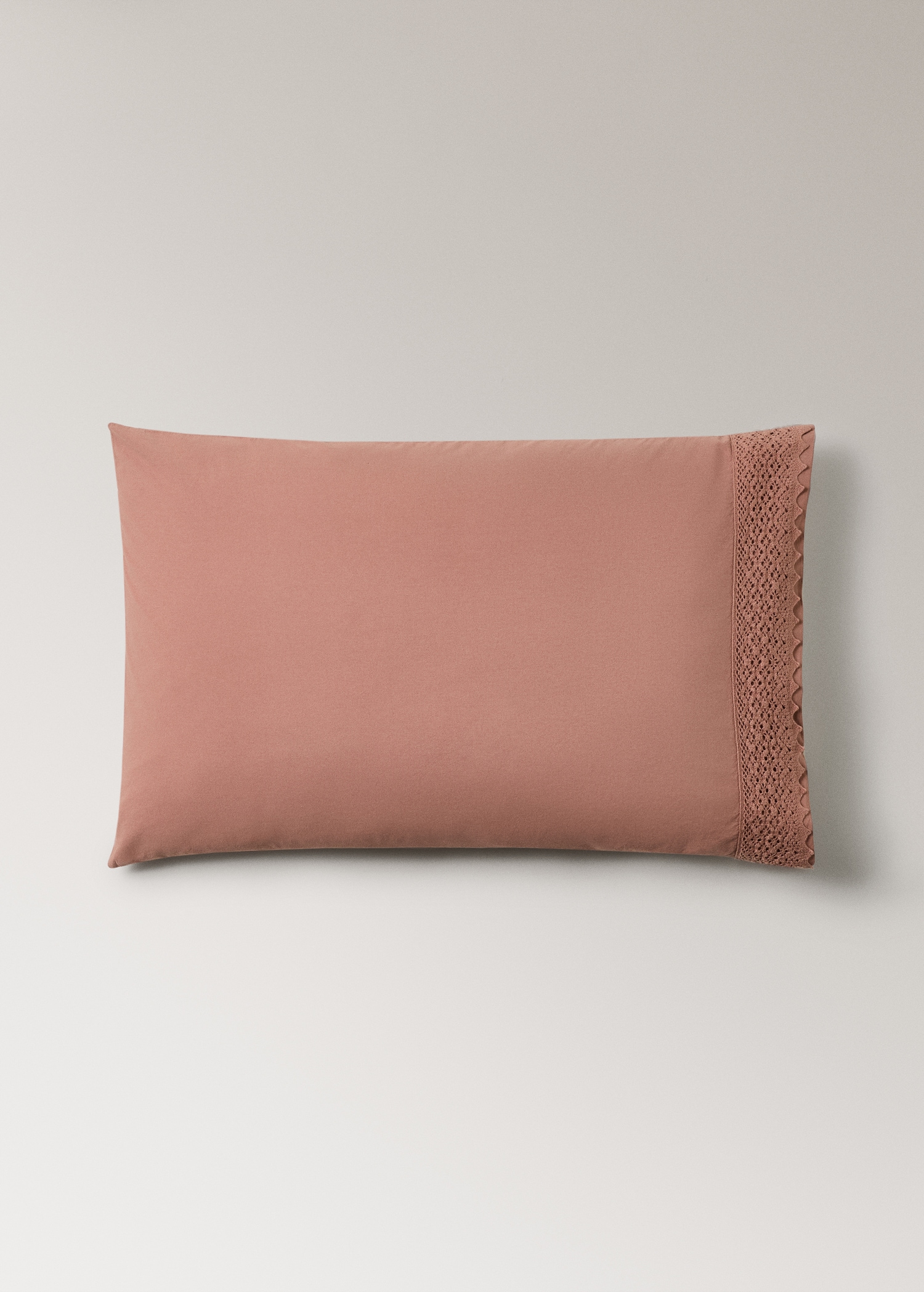 Two washed cotton pillowcases with lace trim 50×75 cm