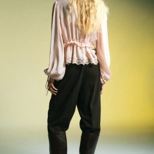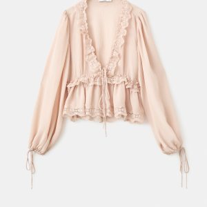 V-neck blouse with lace trim