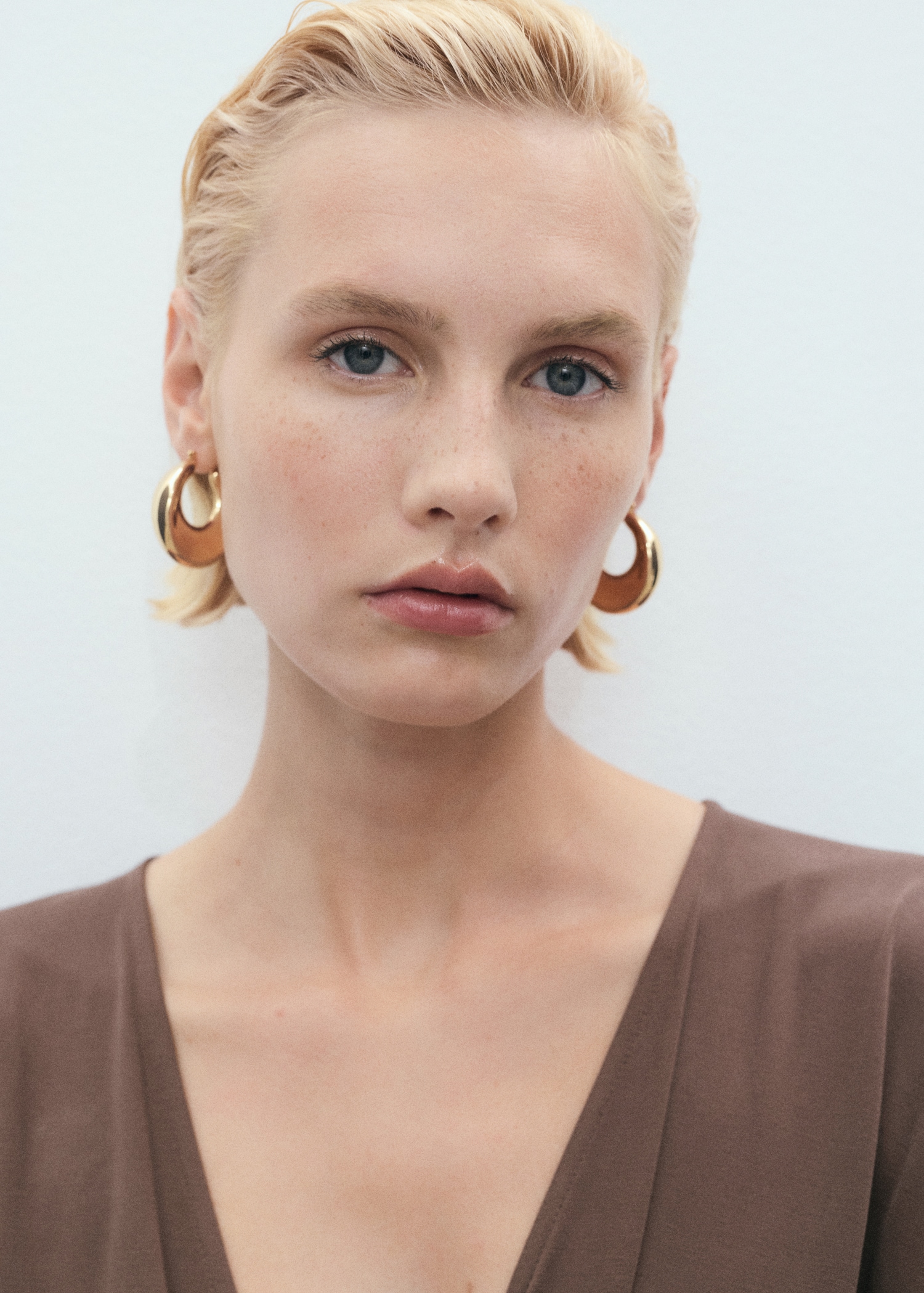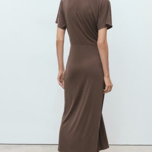 Long design. Straight Design. V-neckline. Short sleeves. Gathered detail. No closure. This garment is part of our casual collection, designed to stylishly accompany you in your day-to-day life