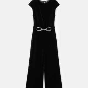 Velvet belt jumpsuit