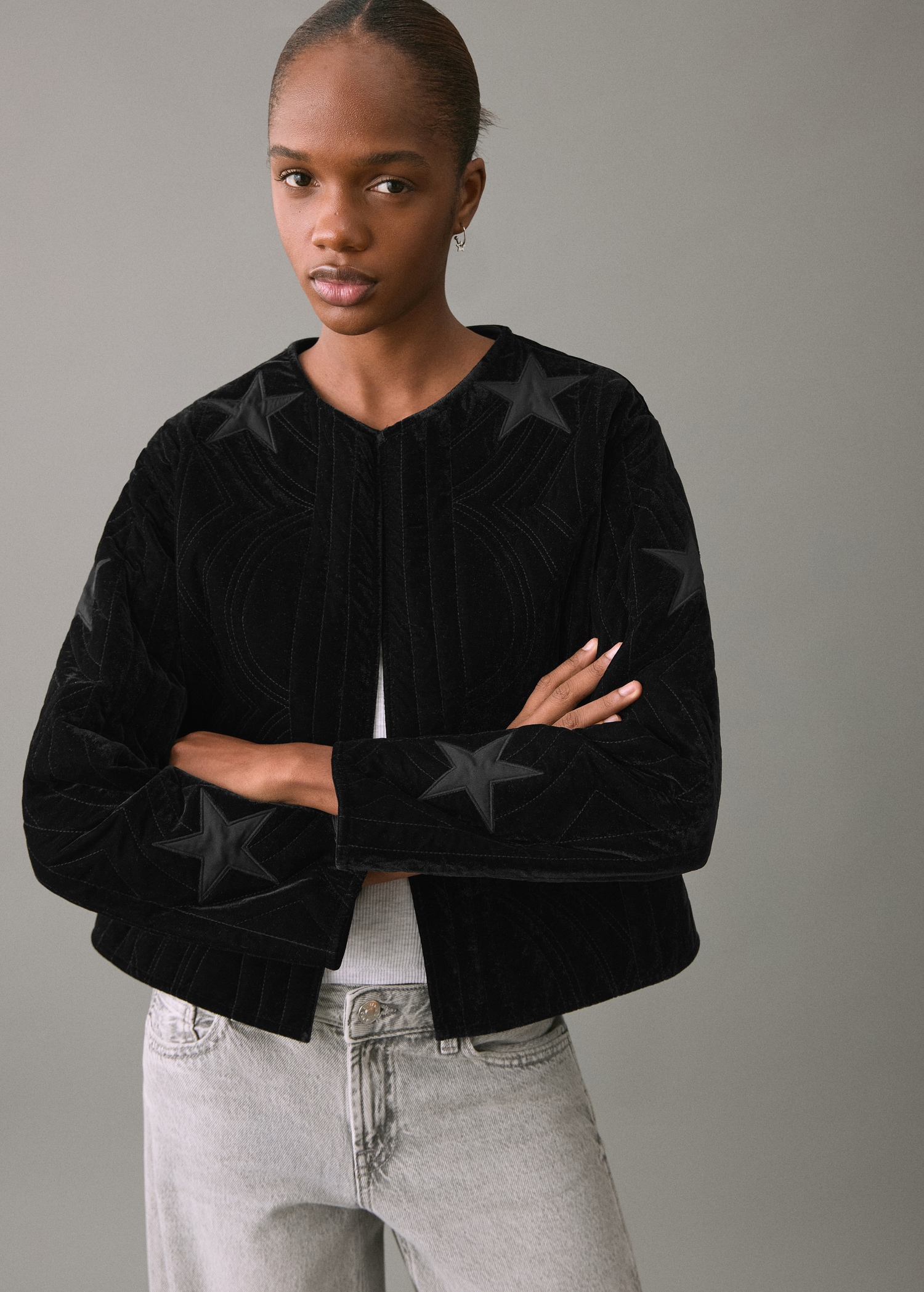 Velvet bomber jacket with star