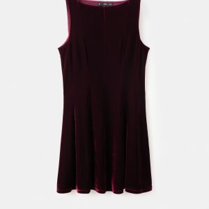 Velvet fabric. Short design. A-line design. Crew neck. Sleeveless. Wide straps. Stitching detail. No closure. Available Plus. This garment is part of our party and event collection, designed to elevate your looks for special occasions.