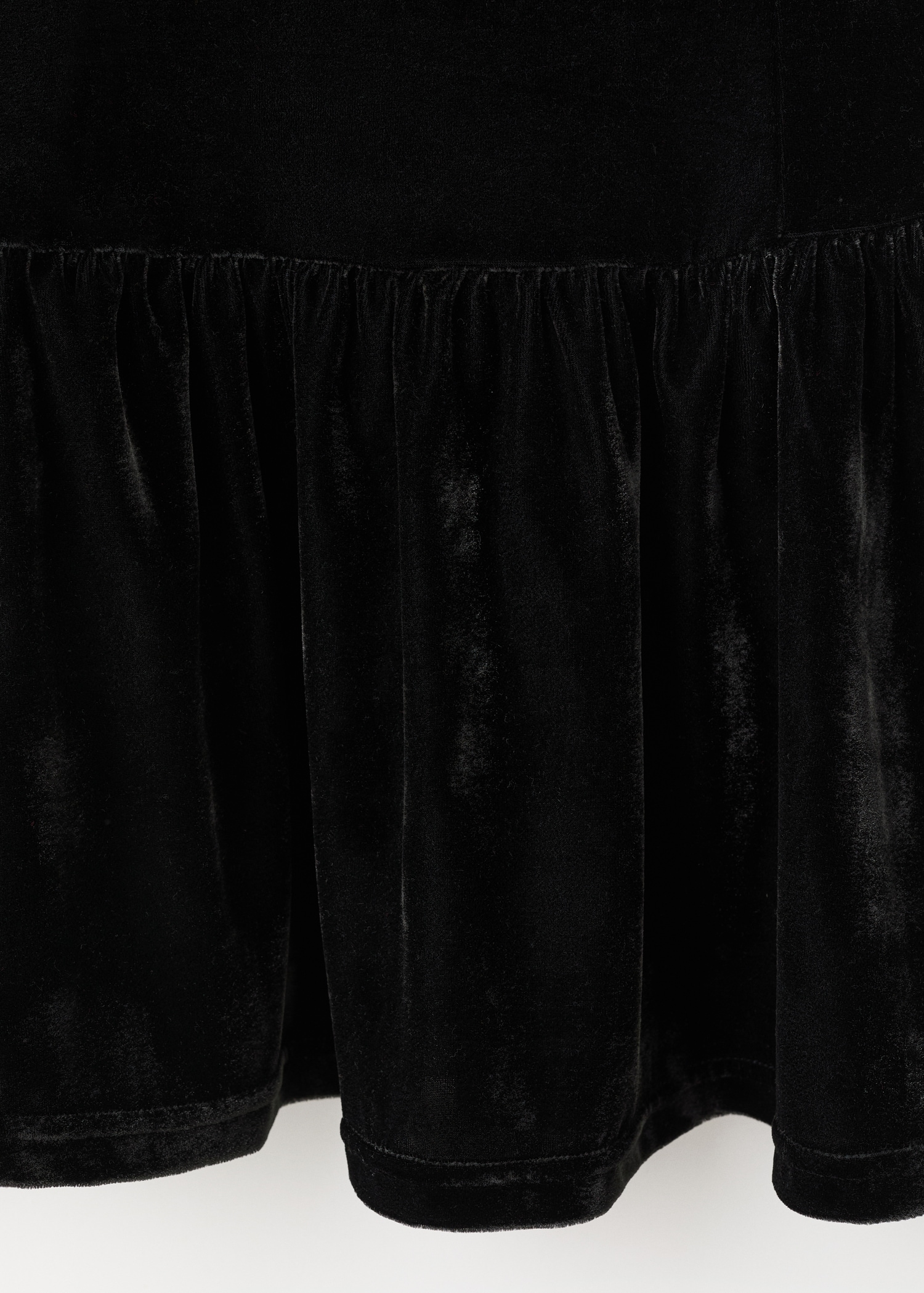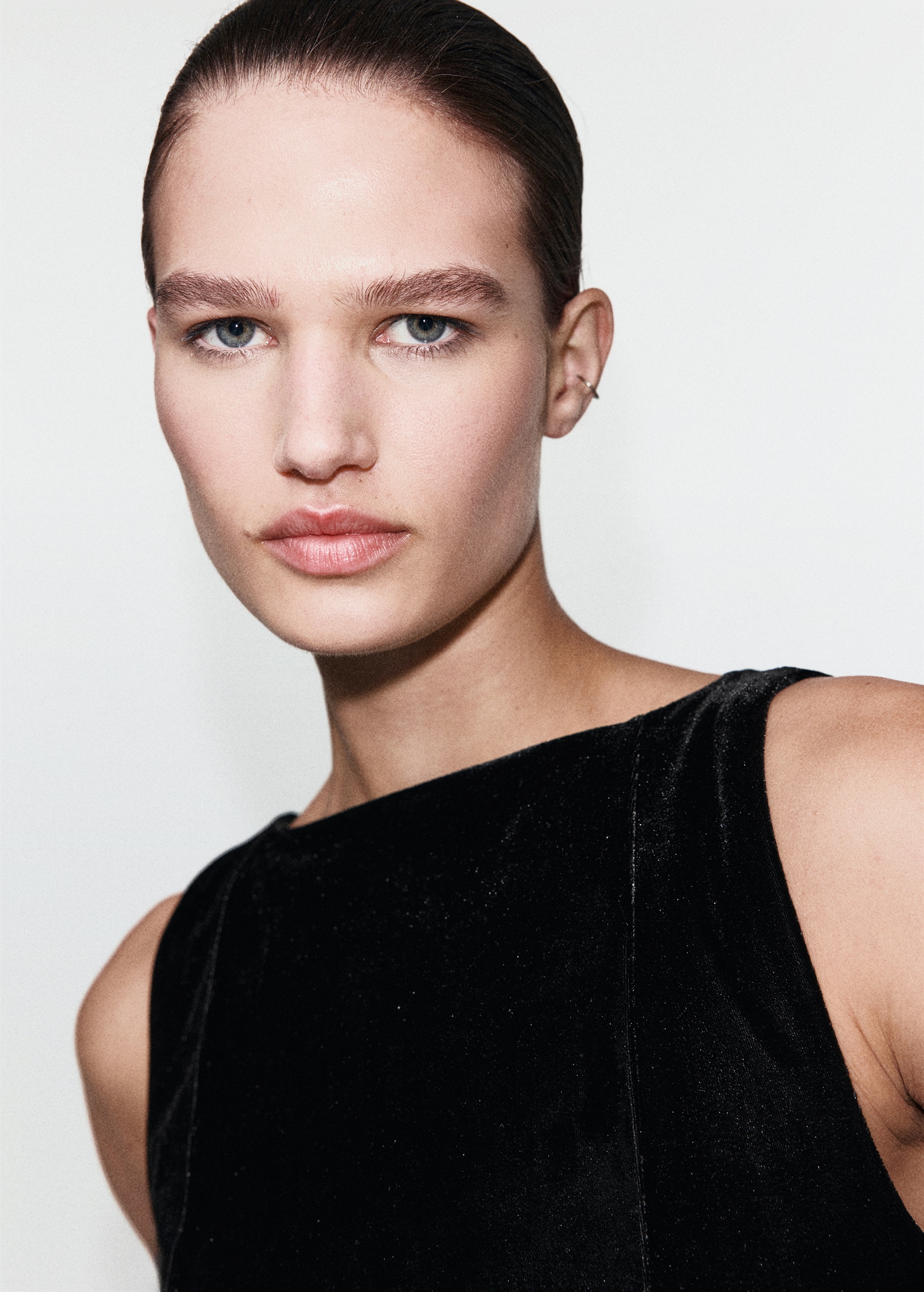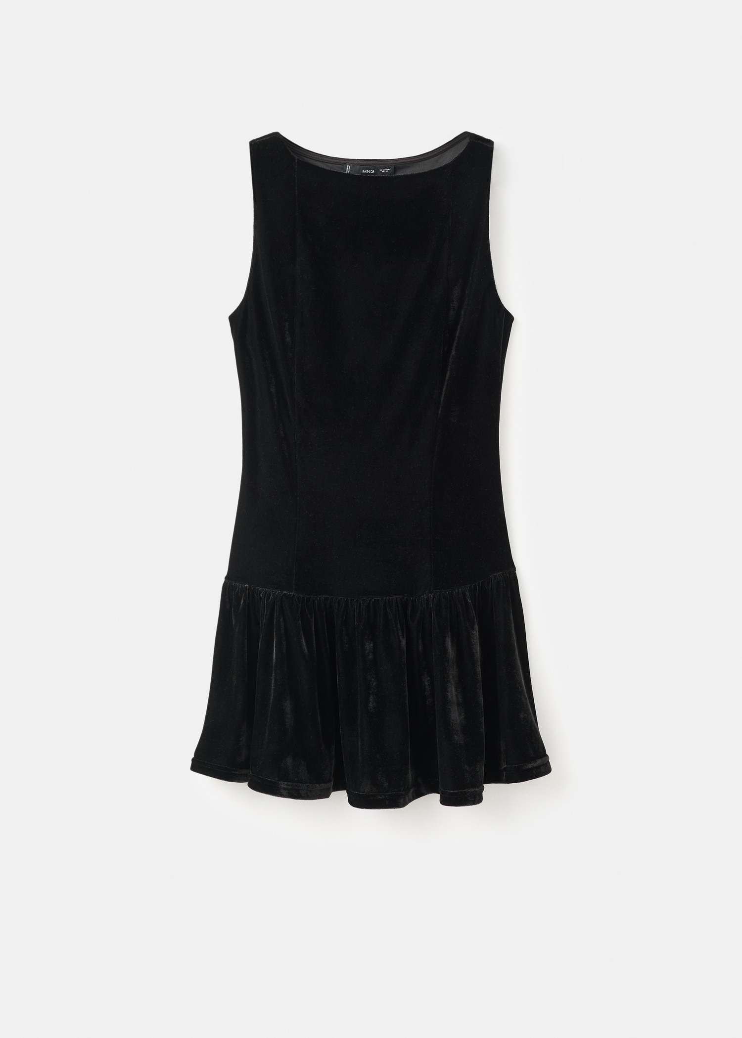 Velvet fabric. Short design. Fitted design. Boat neck. Sleeveless. Wide straps. Full skirt. No closure. This garment is part of our party and event collection, designed to elevate your looks for special occasions.