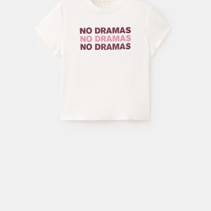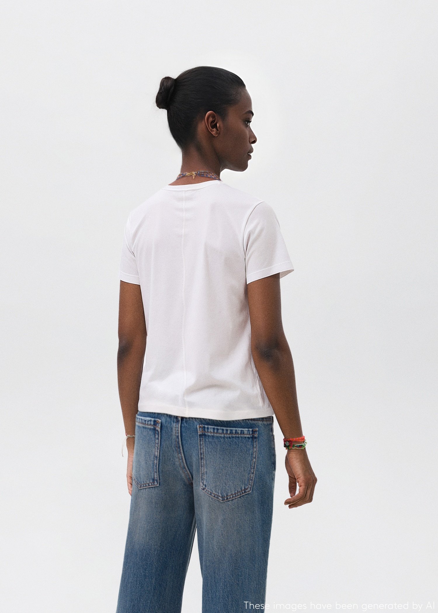 Crafted from 100% cotton fabric, this garment features a straight design with a print on the front. It has a round neck and short sleeves, with velvet details that add texture