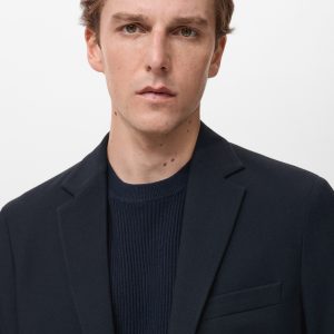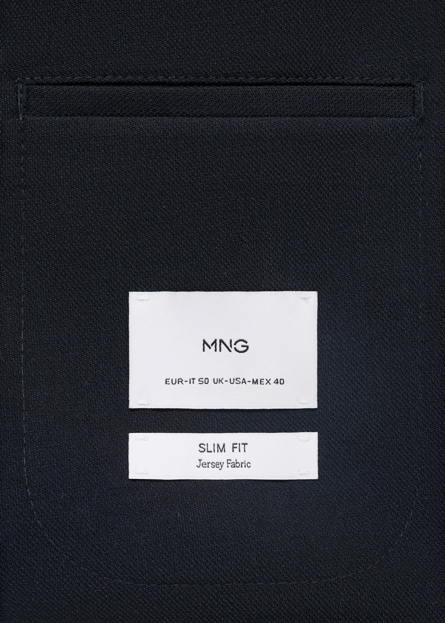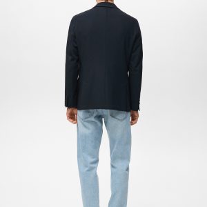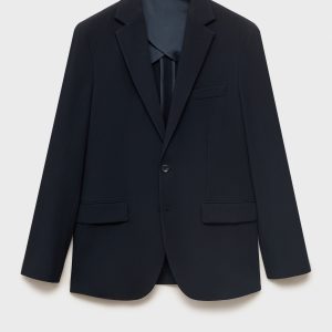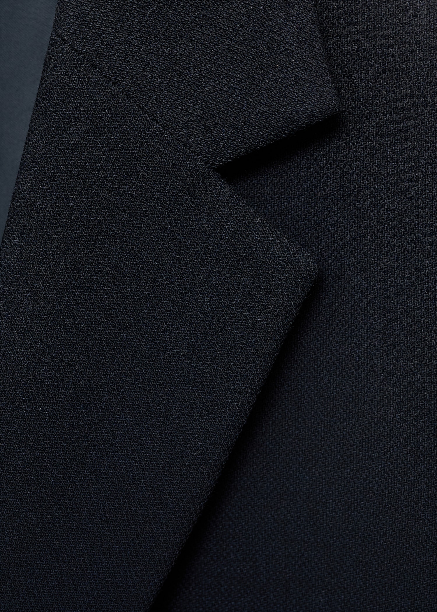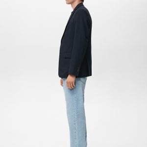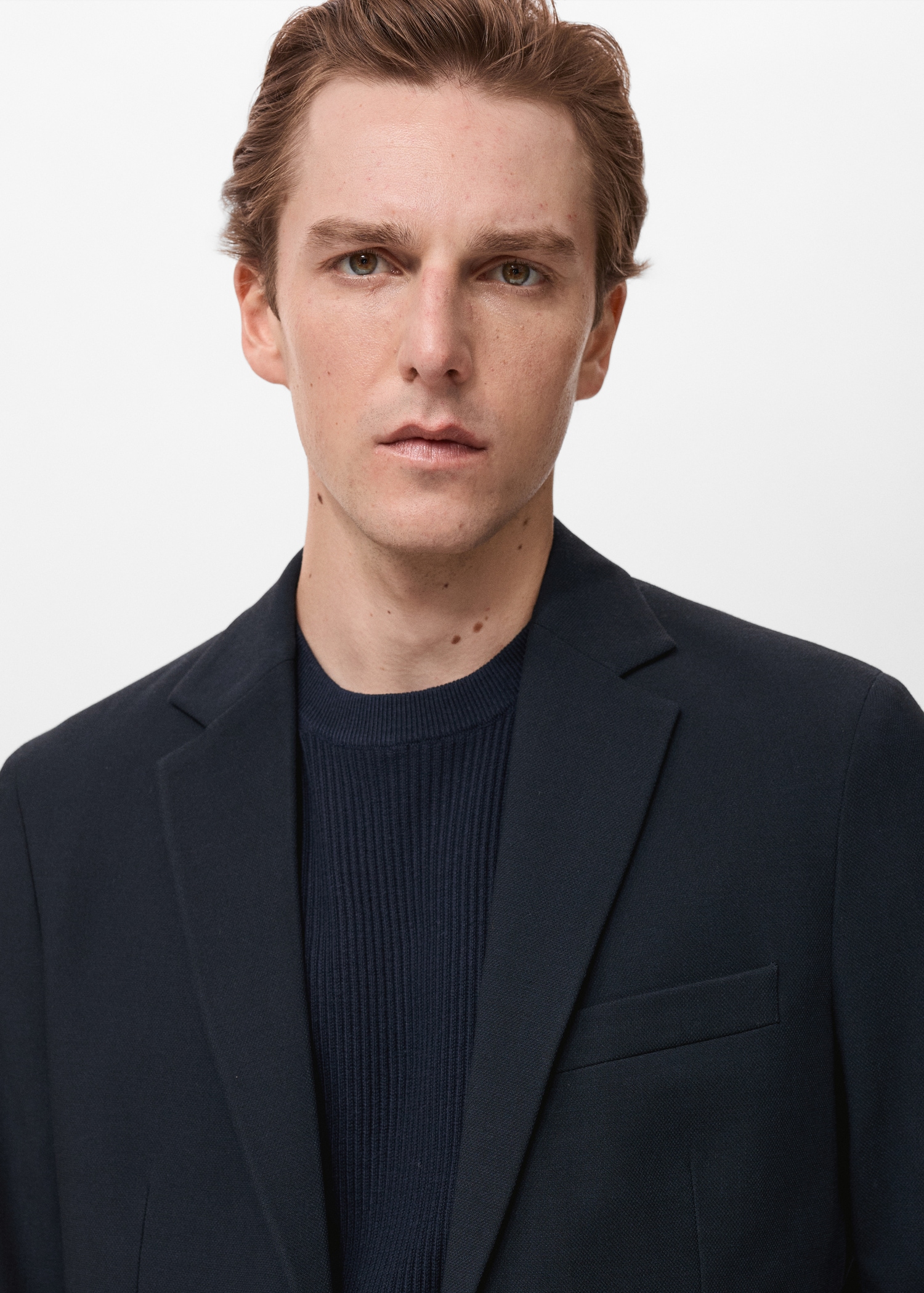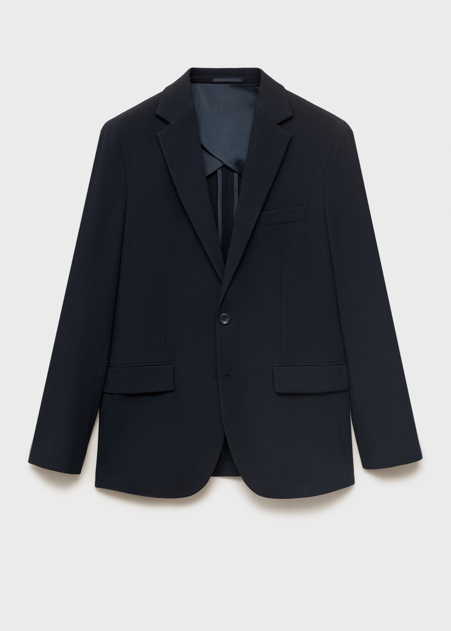 Tailoring collection. Slim fit. Cotton blend fabric. Notched lapel. Front button closure. Chest welt pocket. Two welt pockets with flaps on the front. Buttoned cuff straps. Two vents at the back hem. Inside welt pocket
