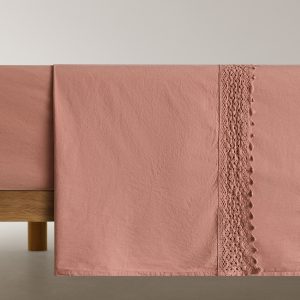 Washed cotton top sheet with lace trim for 135/140 cm bed