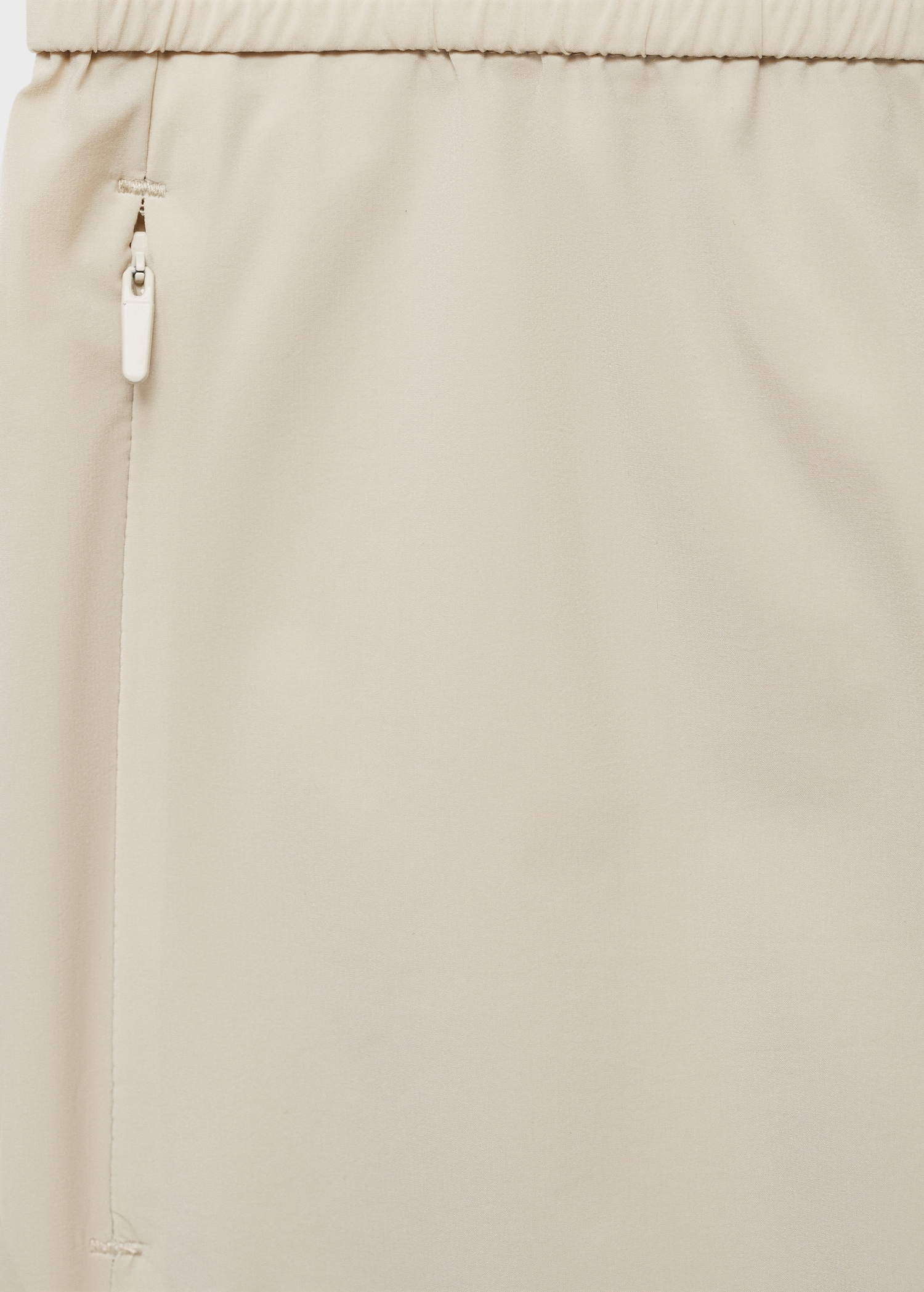 Performance Collection. Perfect for those seeking a functional and comfortable garment. Thermoregulator: This fabric offers optimal breathability to keep you at a stable temperature. Water-repellent: The durable finish of this garment protects against light rain, repelling contact with water and raindrops. Elastic waist with adjustable inner drawstring. Double button and zip closure. Zipper pockets on both sides. Two rear welt pockets with snap button closures. PERFORMANCE: A collection of garments crafted from technical fibers. This selection offers a wide range of advanced features such as bi-stretch fabrics, and quick-drying, easy-iron, thermoregulating, breathable or water-repellent properties, organised into three general categories: Thermoregulating, Functional and Comfort
