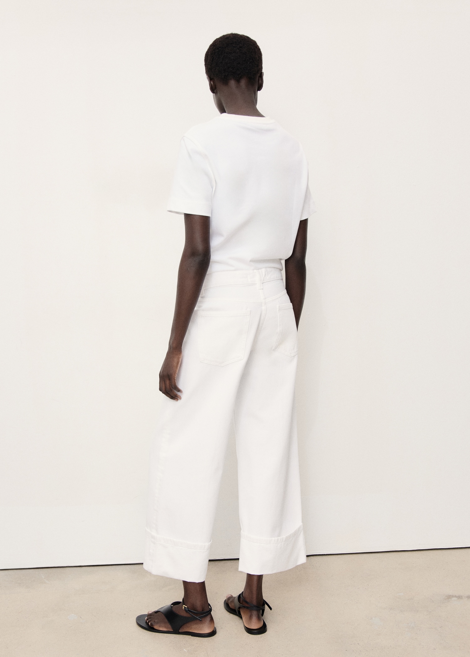 Wide leg cropped jeans with turned-up hem