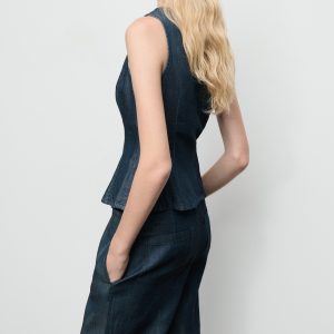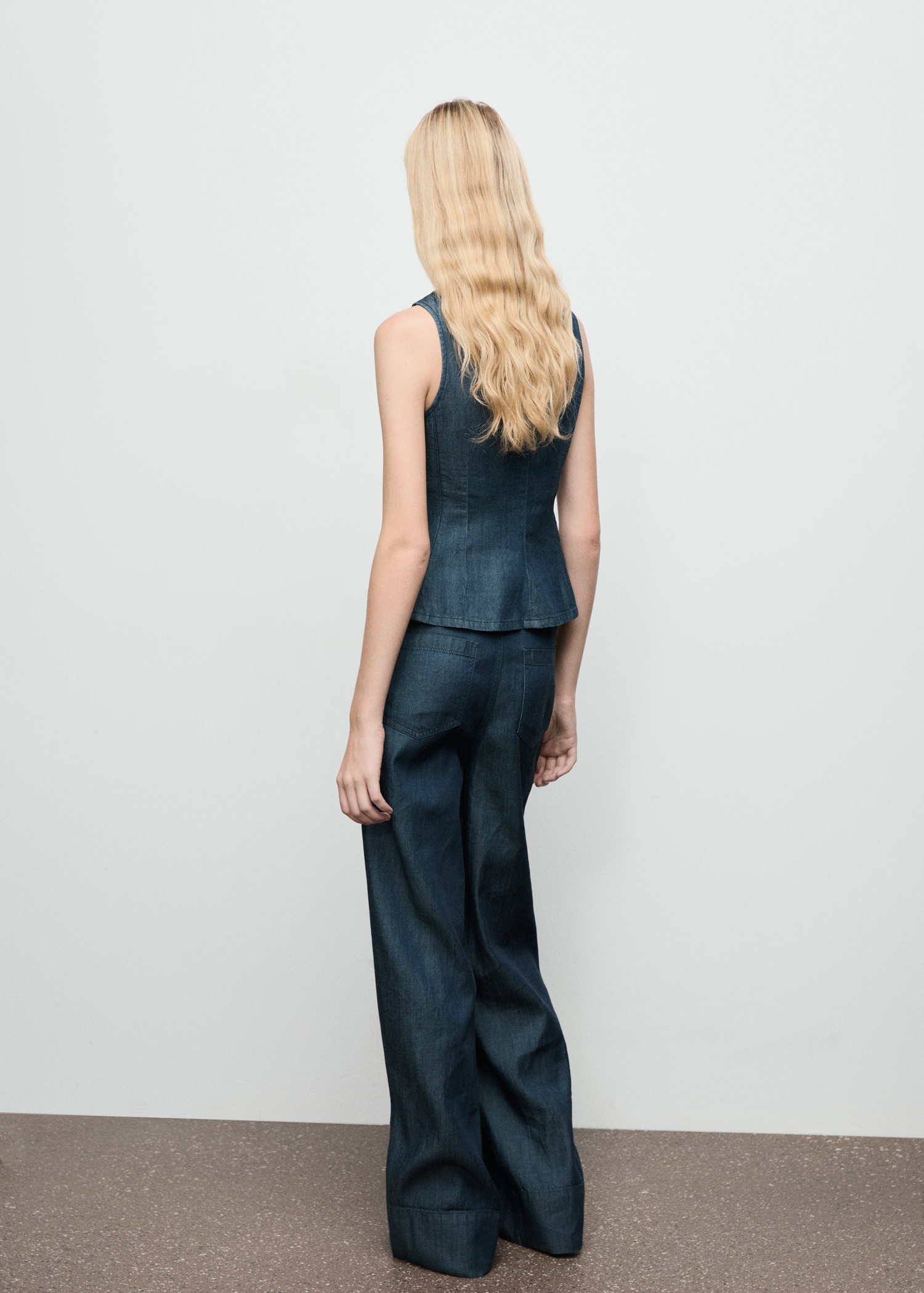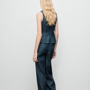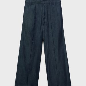 Wide leg denim pants with stitching