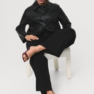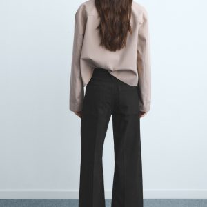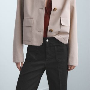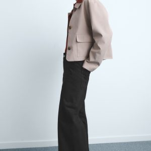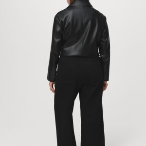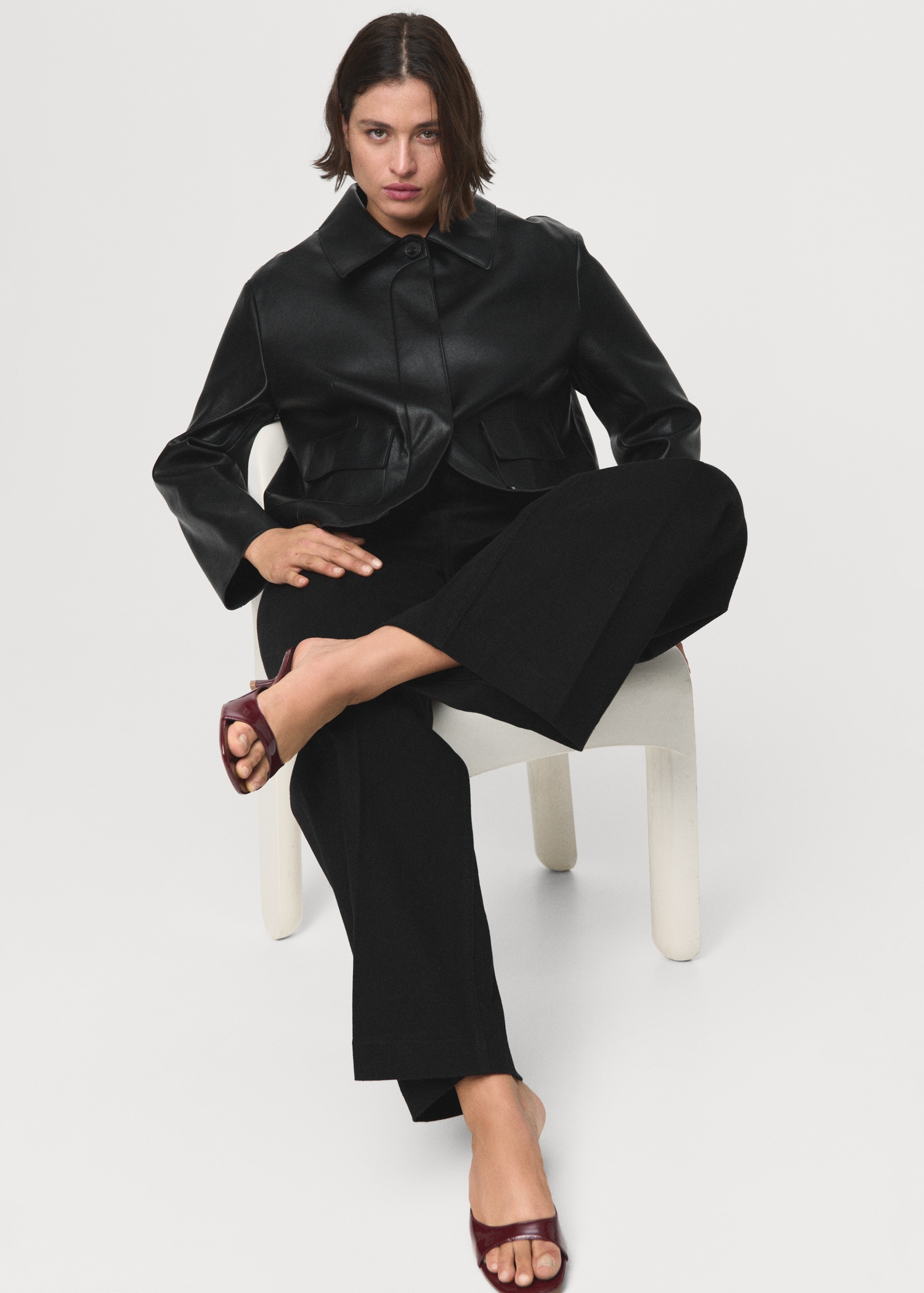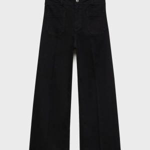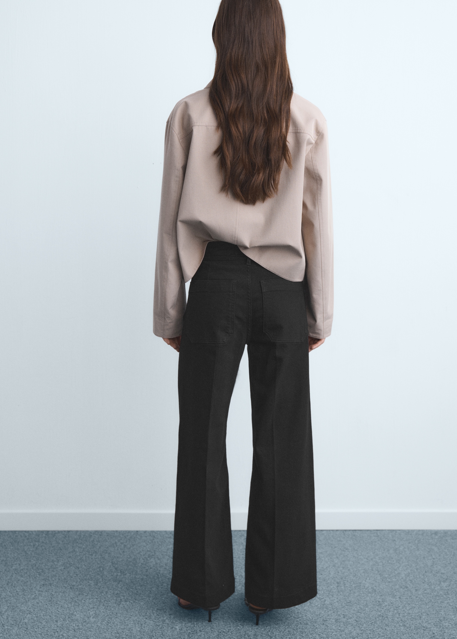 Cotton denim fabric. Long design. Wide-leg design. High-rise. Belt loops. Two patch pockets on the front. Front zipper and button closure. Available Plus