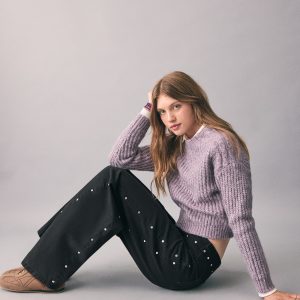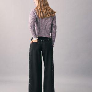 Wide leg jeans with studs