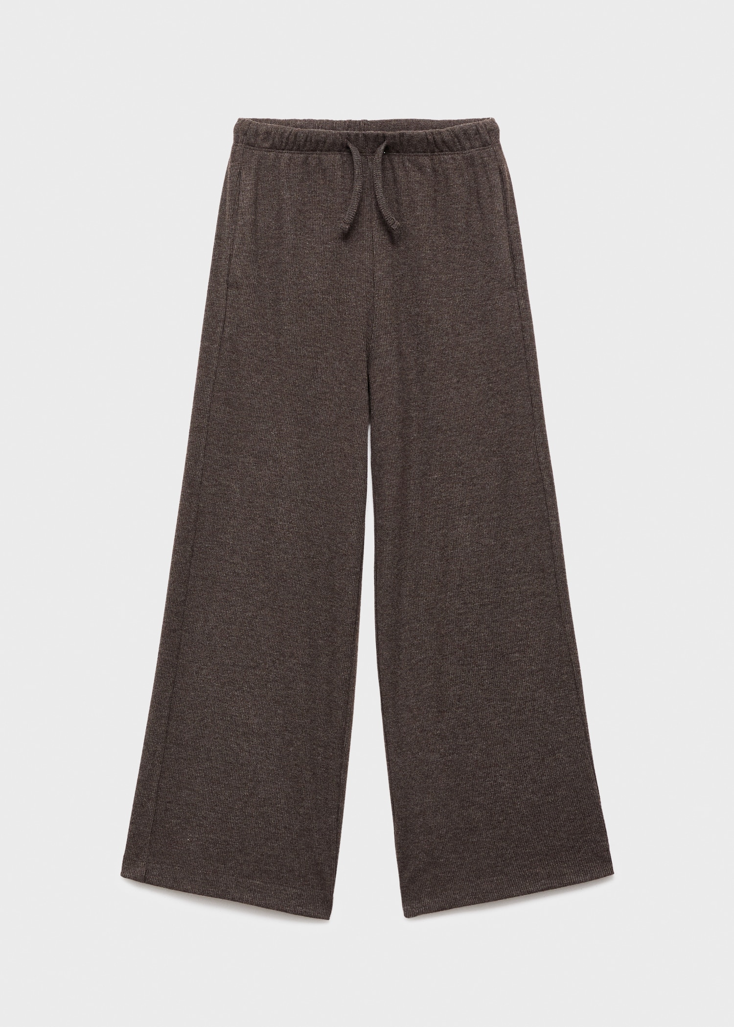 Crafted from fluid knitted fabric, this long wide-leg design offers comfort and style. The elasticated waistband with adjustable tie ensures a perfect fit. It includes two practical side pockets