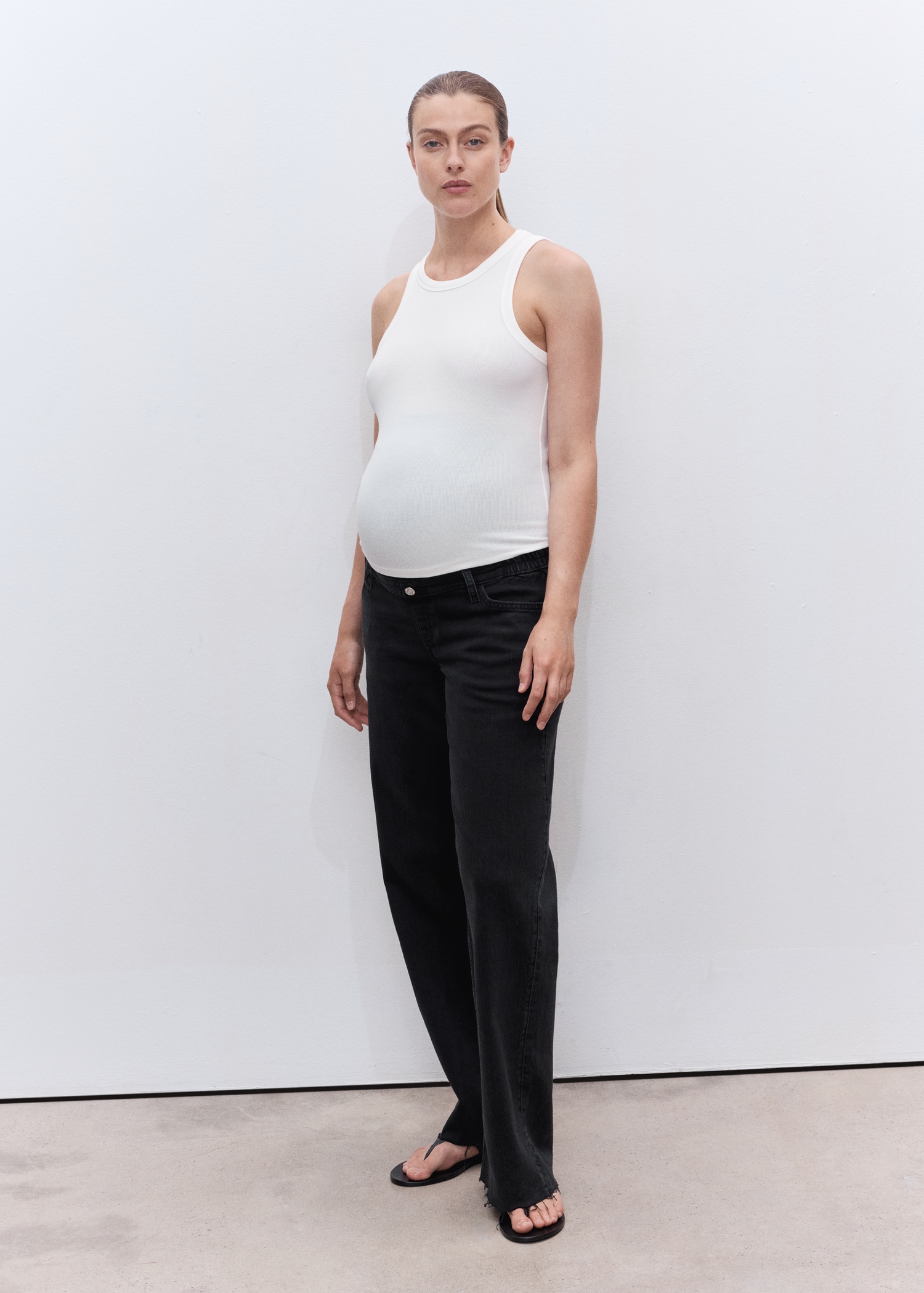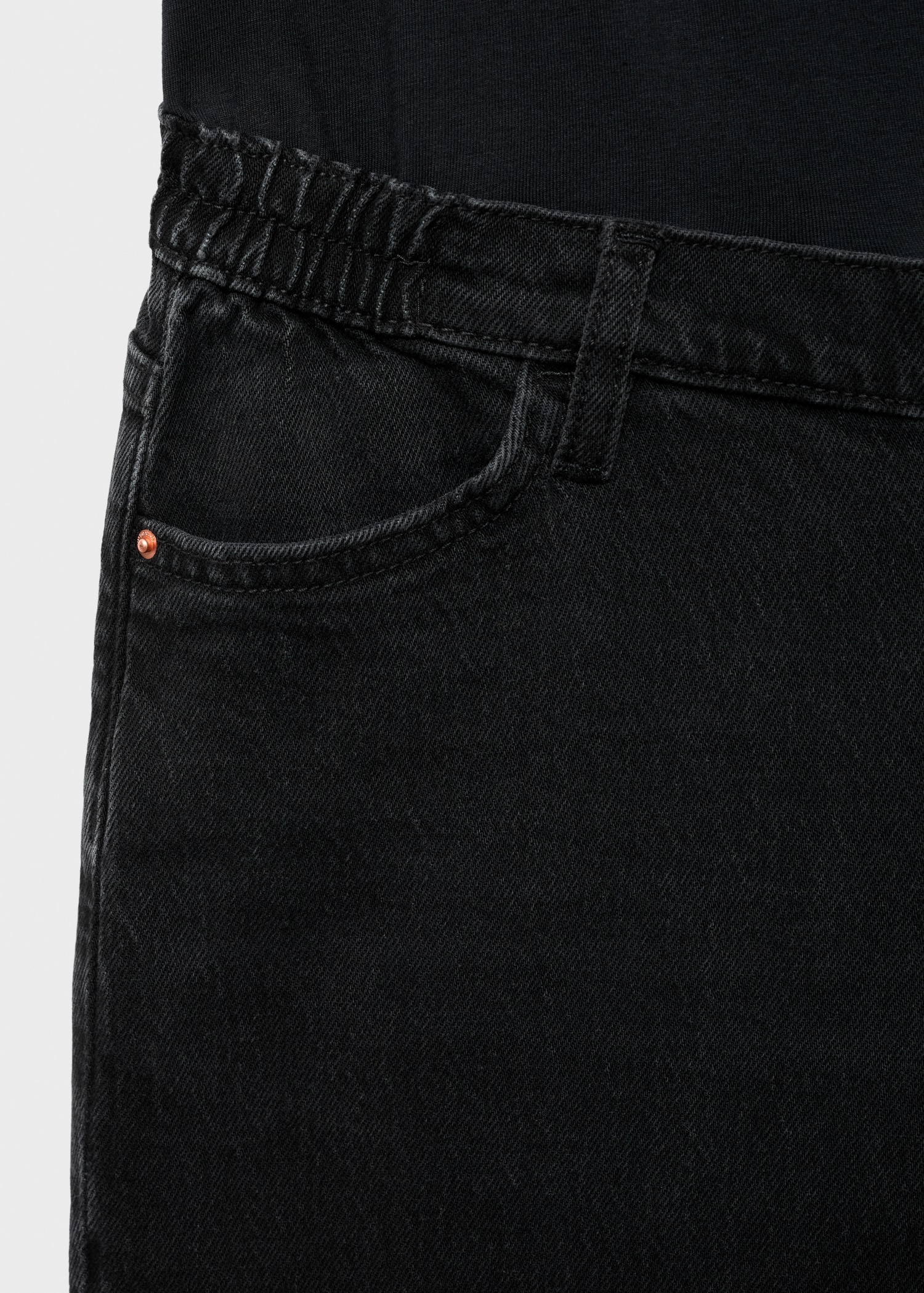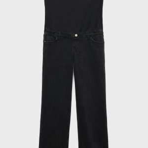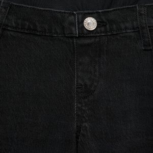 Cotton denim fabric. Long design. Wide leg design. Low waist. Elastic waistband. Soft elastic at front side waistband for added comfort and support the growing bump. Belt loops. Five pockets. Decorative button. Frayed hem. No closure. Maternity. Provides comfort and freedom of movement. We recommend you buy your usual size. Online Exclusive