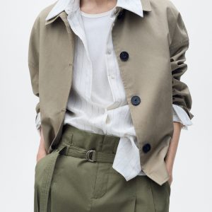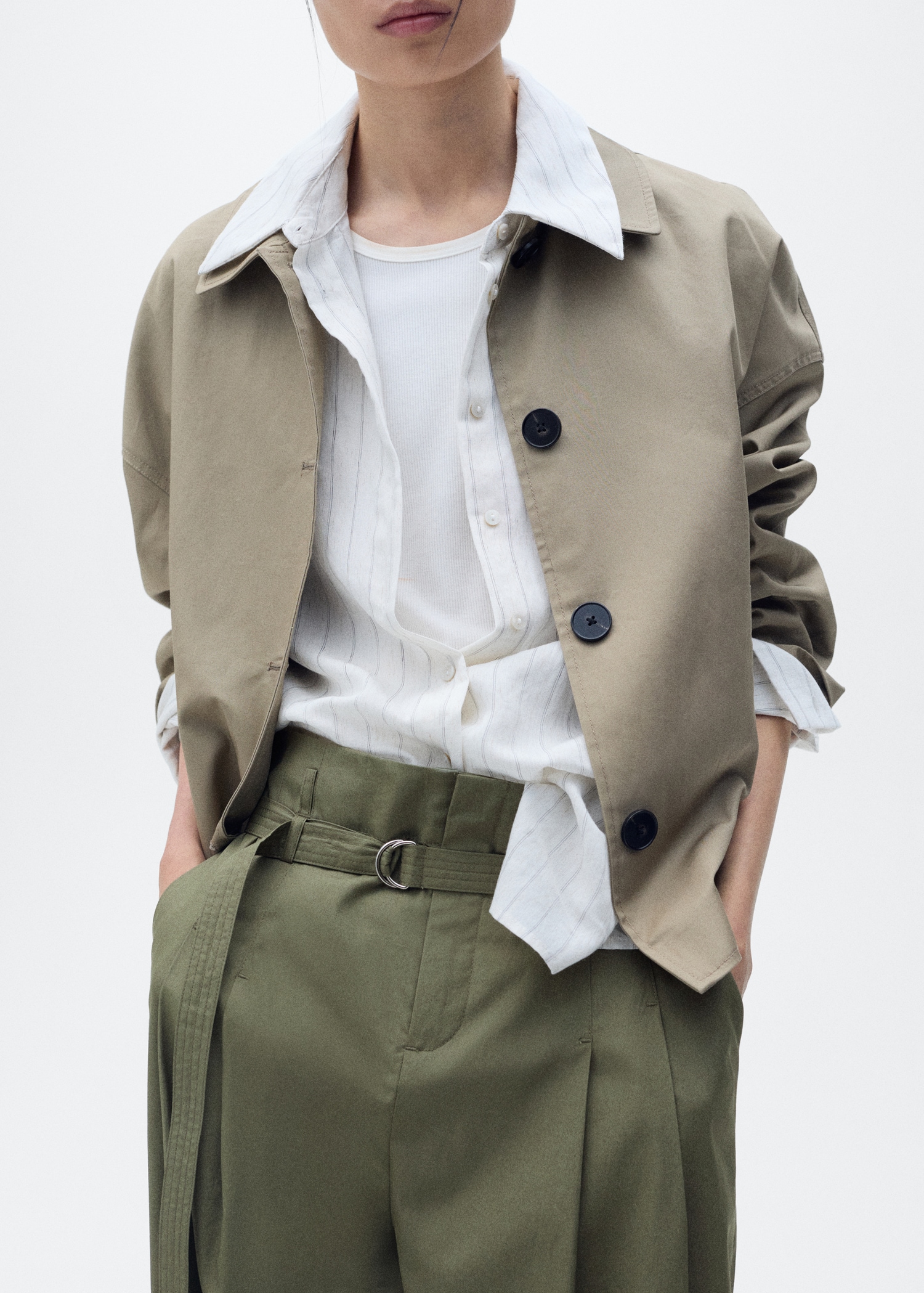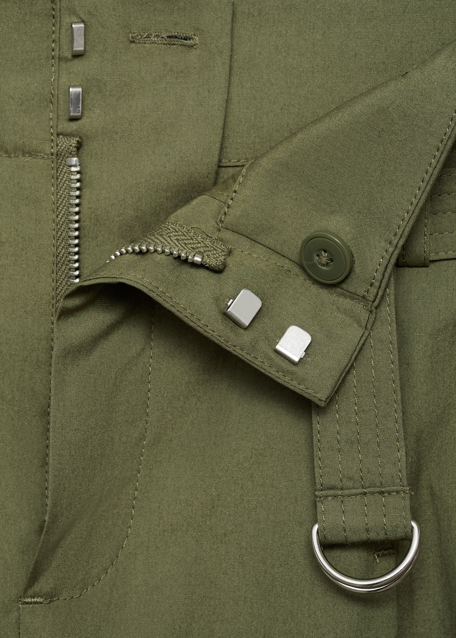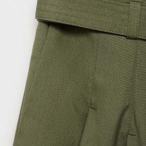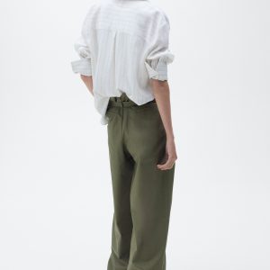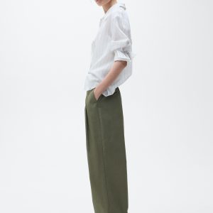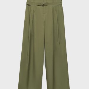 100% cotton fabric. Wide-leg design. Long design. High-rise. Belt loops. Belt buckle fastening. Front pleat detail. Two side pockets. Button, hook and zipper front closure