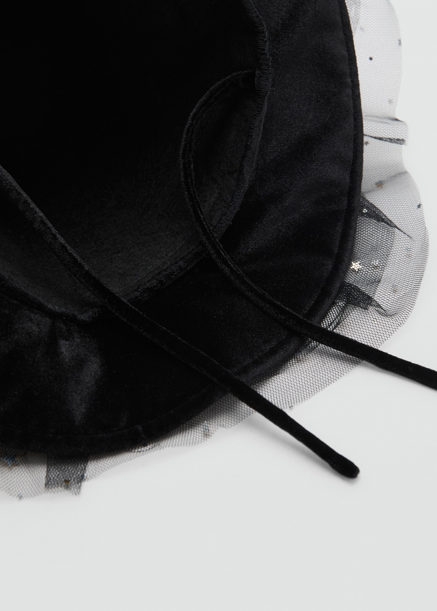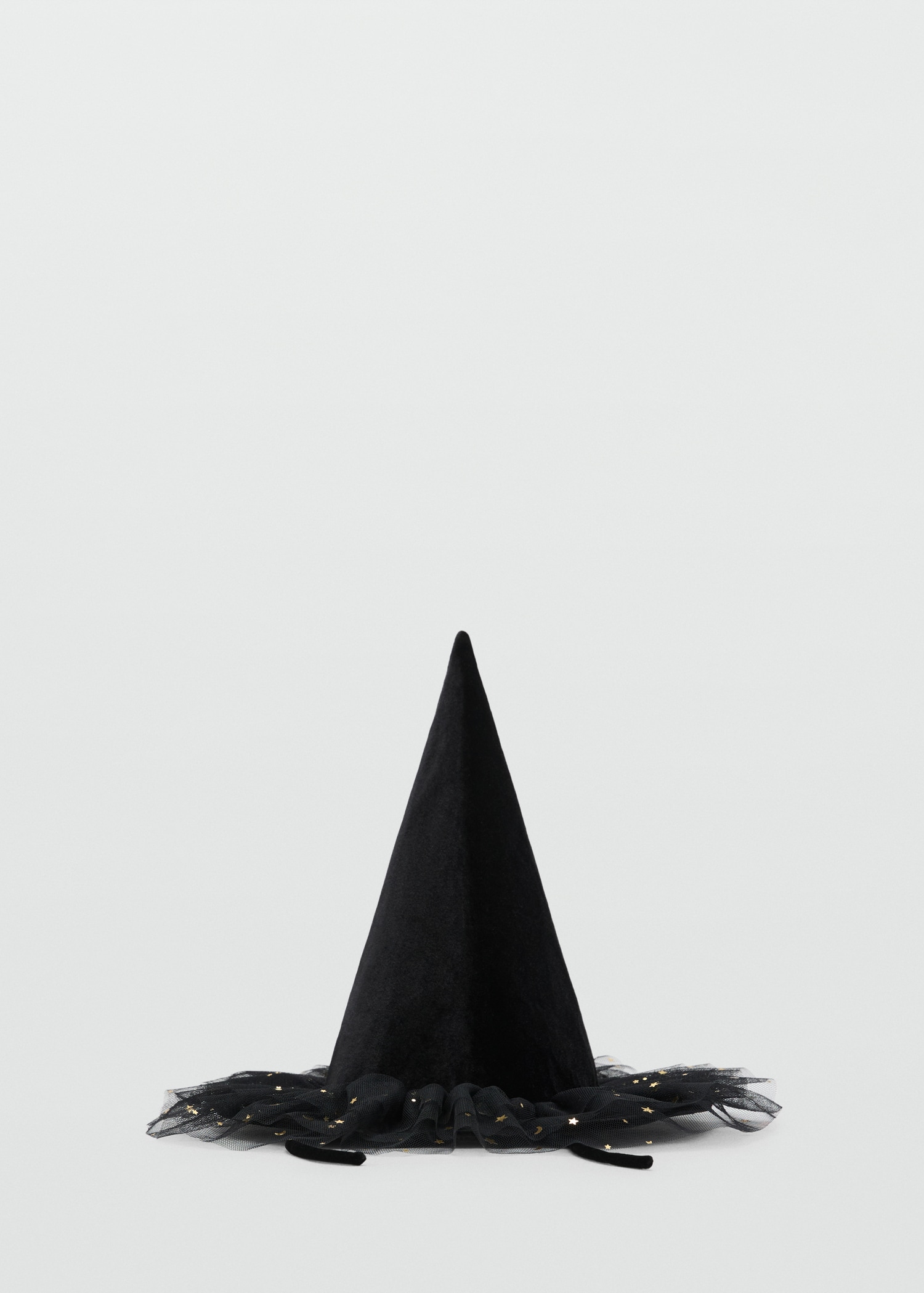 Hat. Velvet fabric. Witch design. Tulle Fabric. Star Decoration. Tie closure. Halloween Collection