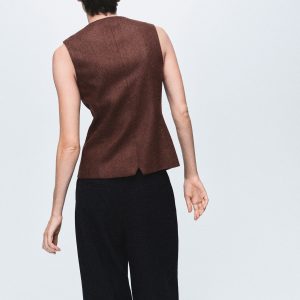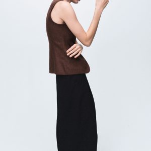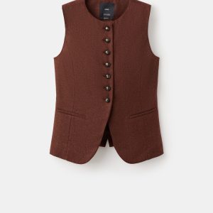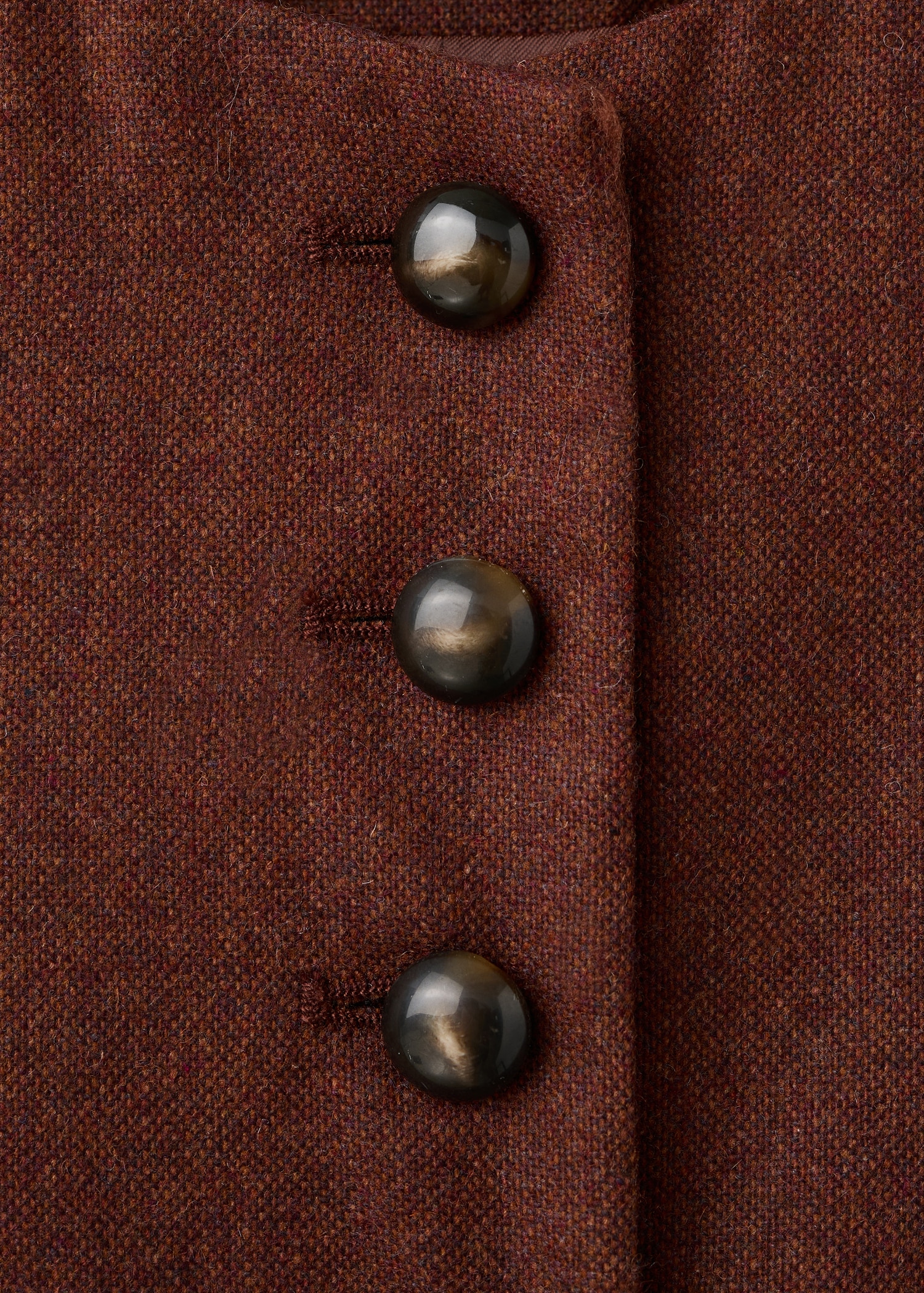 Crafted from a wool-blend fabric, this straight design features a round neckline and wide straps. It has two front welt pockets and a slit at the hem. It fastens with front buttons. It comes with a matching jacket