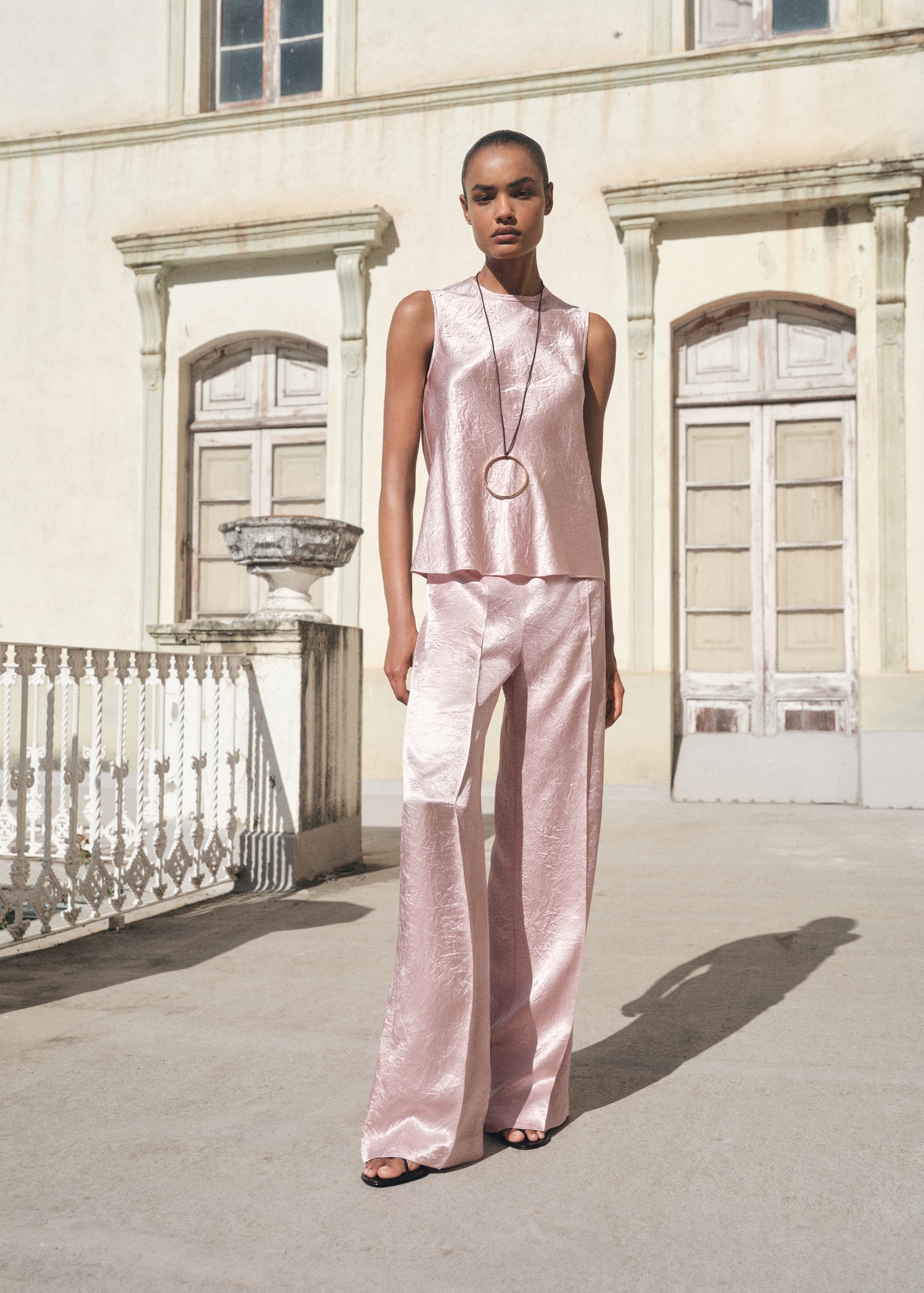 Wrinkled-effect satin blouse