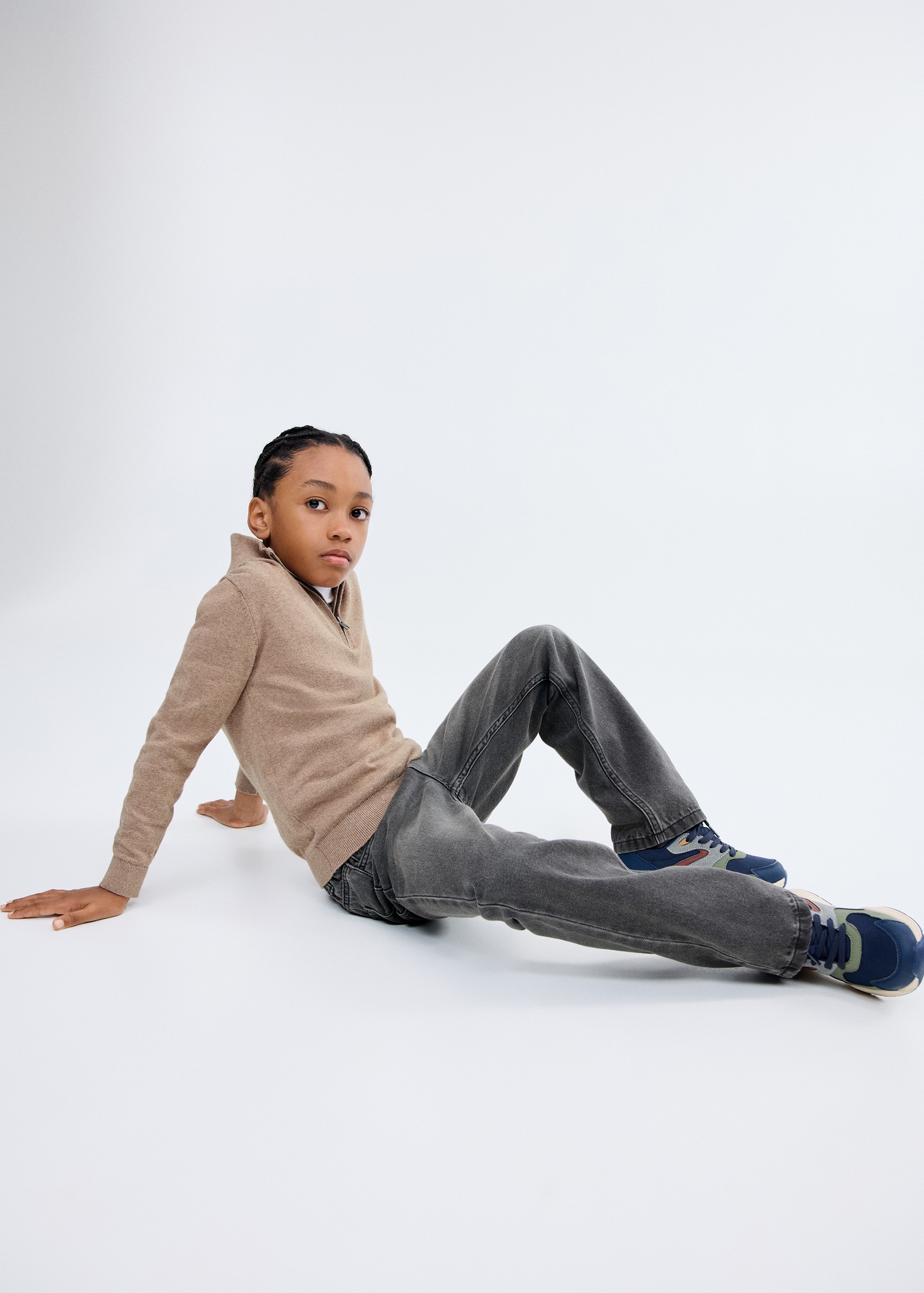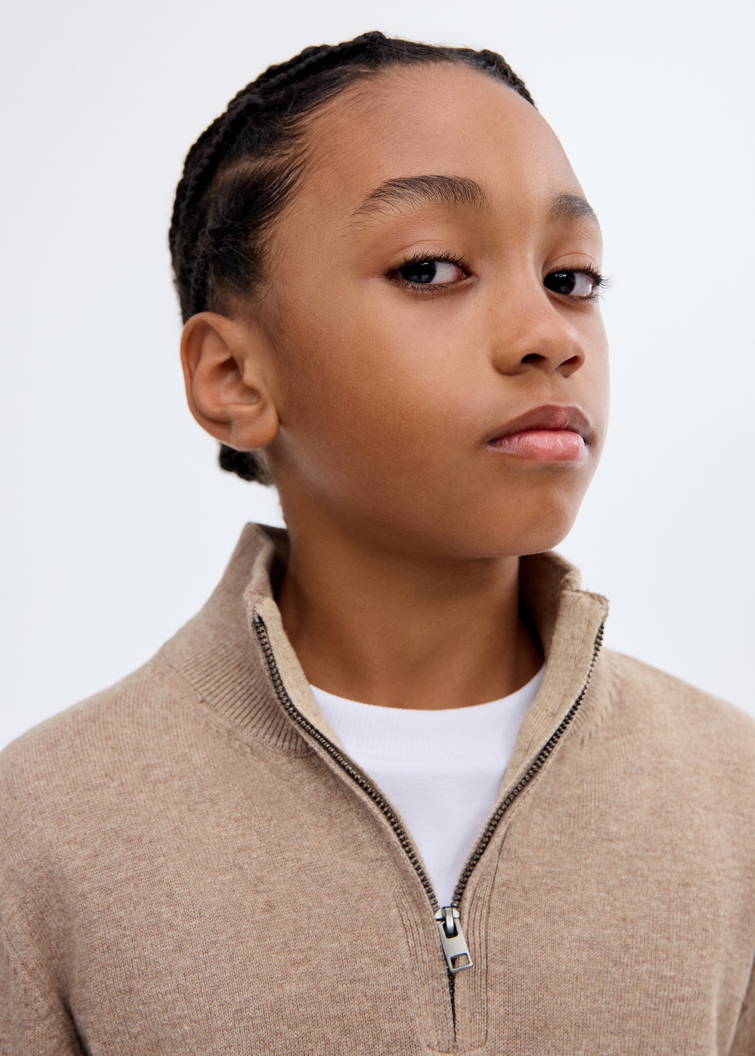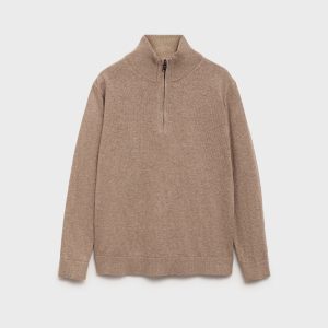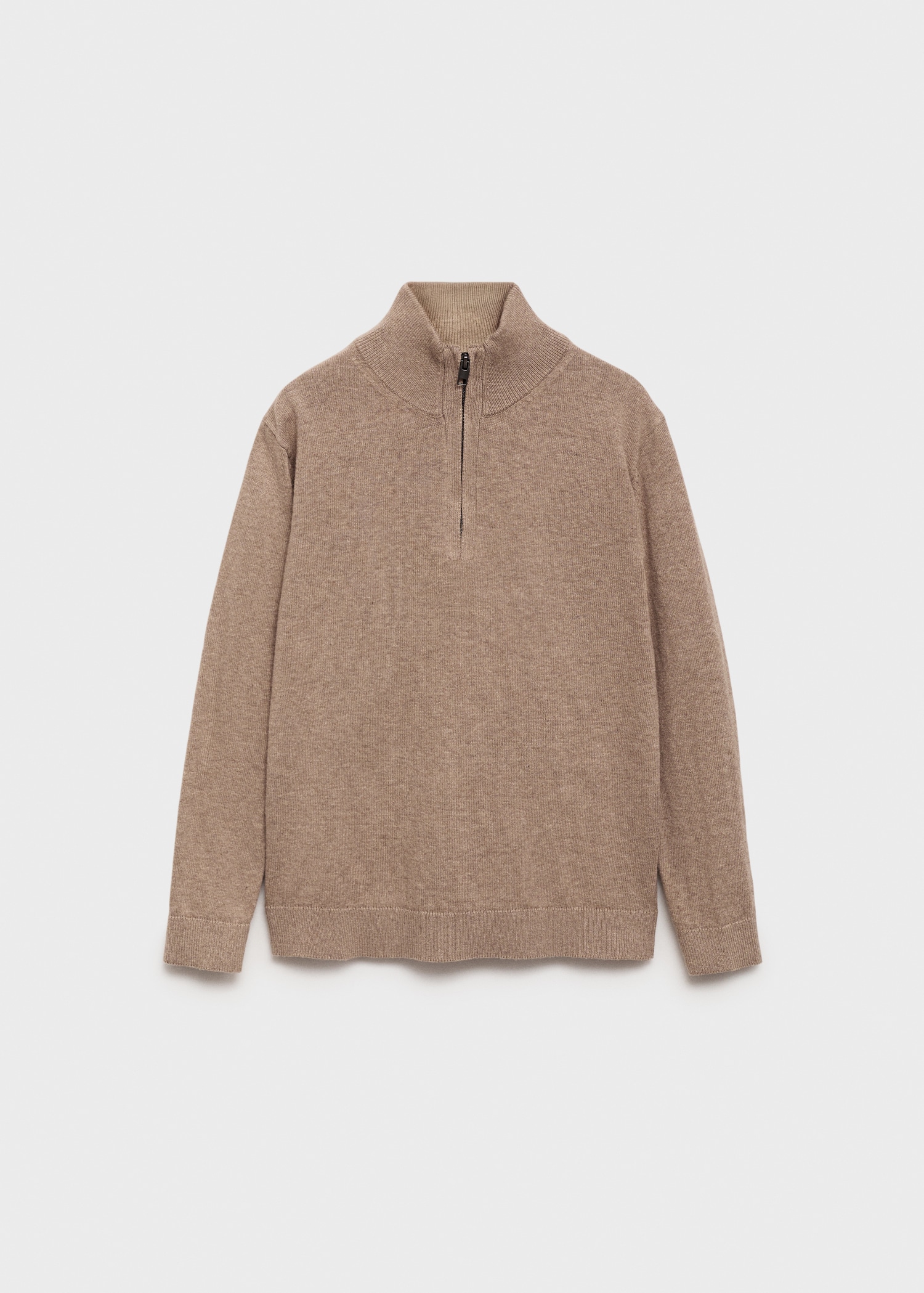 100% cotton fabric. Knitted fabric. Straight Design. Perkins neck with zipper. Contrast collar. Long Sleeve. Ribbed neck, cuffs, and hem